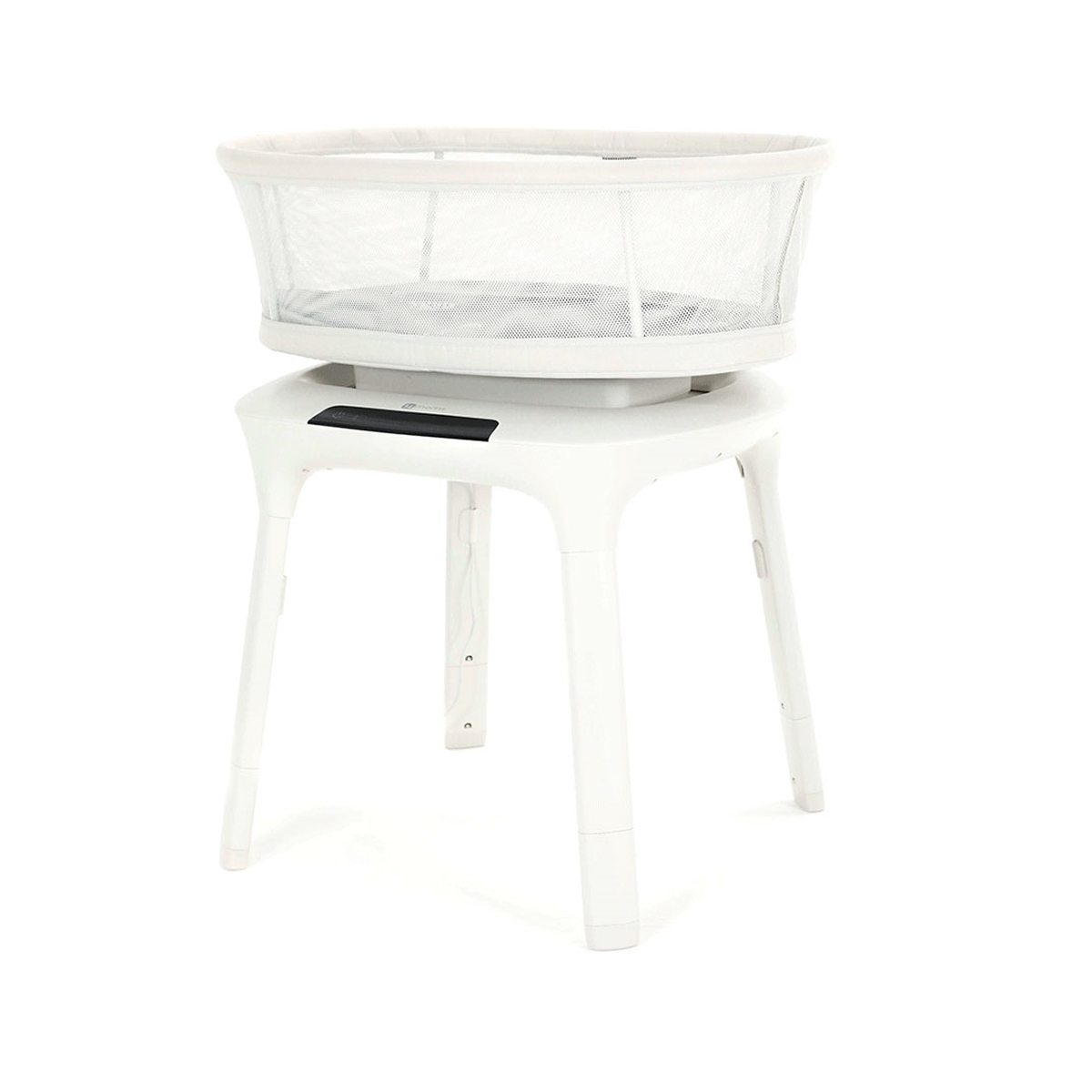 Description: The 4moms® mama Roo sleep TM bassinet uses the sameproven motions of the 4moms mama Roo® infant seatto help your baby fall asleep and stay asleep longer. Soothe and comfort baby in the 4moms mama Roo sleep bassinet with its natural bounce and sway motions that move just like parents do. It features 5 unique motions (car ride, wave, kangaroo, tree swing and rock-a-bye) and 5 speed options to find the perfect combination baby loves. You can also play one of the 4 white noise options(rain, ocean, fan and shh). Easily control all features via the 4moms app on a compatible smart device. The 4moms app also features a timer that can be used to help establish a bedtime routine and improve sleep. The mama Roo sleep bassinet provides a firm, flat sleep surface that follows the AAP?s Safe Sleep Guidelines. Features such as height adjust, for optimal visibility & accessibility, and mesh sides create a safe sleep environment and give you peace of mind so that you and your baby can sleep soundly. Mama Roo sleep TM grey bassinet sheet is included. Features: Firm, flat sleep surface? Mesh sides for visibility and airflow? 5 unique motions (car ride, kangaroo, tree swing, rock a bye, and wave) to soothe & improve sleep? 5 speeds? Timer to help establish a bedtime routine? 4 white noise options: ocean, fan, shh, & rain? Bluetooth enabled ? control all features via the4moms app? Adjustable height? Water resistant mattress (sheet included)? For use from birth until child reaches maximumweight limit of 25 pounds or can push up on theirhands or knees, whichever comes first. Dimensions: 86. 4 x 61 x 99. 1 Net weight : 13. 8kg Gross weight: 16. 75kg