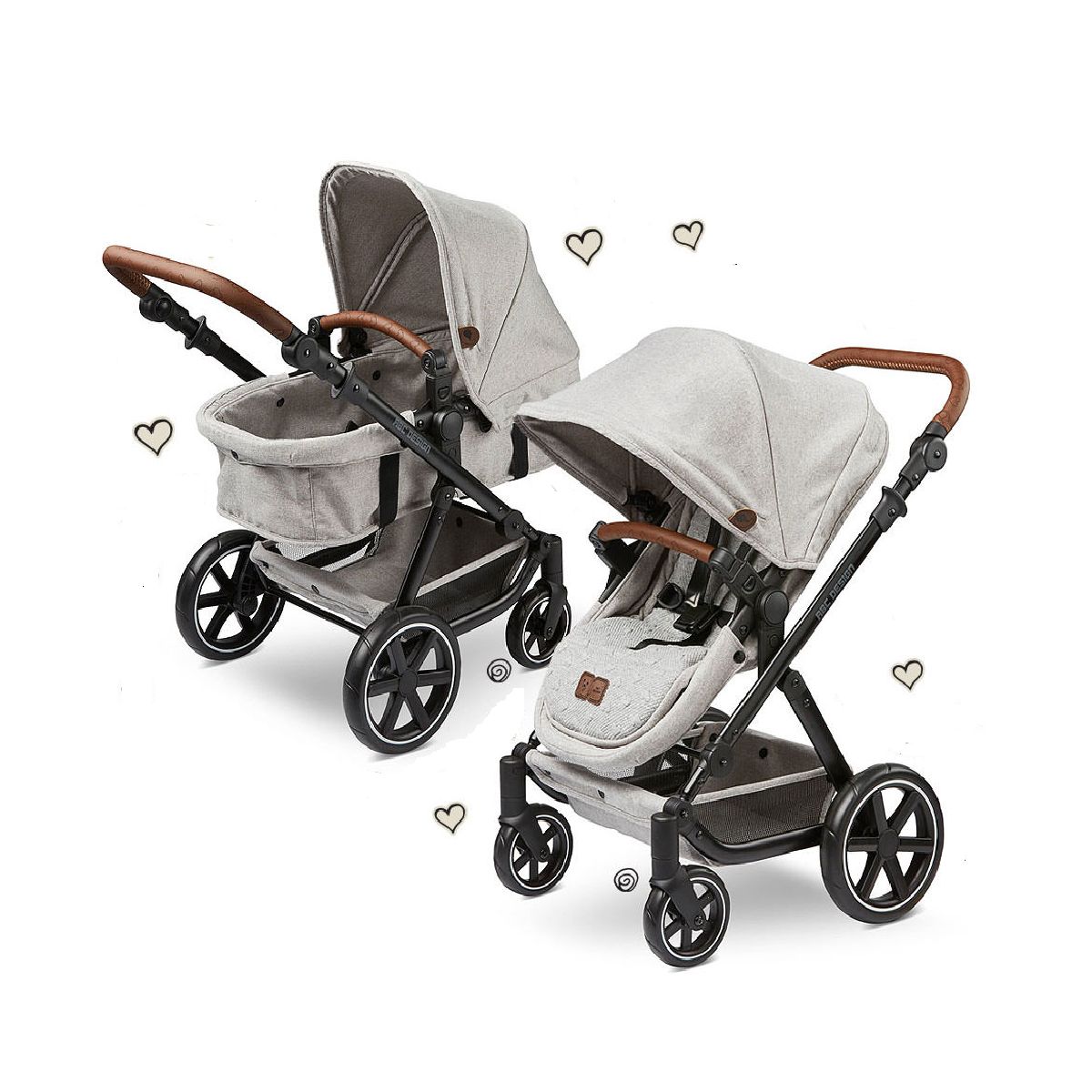The Migno is every bit as good as the big version in both quality and function, offering everything a child could wish for. The doll?s pram is very popular thanks to its stylish design, just like the bigger models. The push-bar grip and bumper bar have high-quality imitation leather handles. Your child will set trends with the sophisticated aluminium frame. The smart whitewall wheels give the doll?s pram an impressive and elegant look. Thanks to the swivelling front wheels, this stylish doll?s pram is child?s play to steer. You can adapt the hinged push handle to suit your child?s individual needs. This is particularly important to ensure a comfortable and healthy pushing experience. You can simply click the carrycot onto the nifty frame ? just like the ?grown-up? pushchairs from ABC Design. When Dolly gets a bit bigger, you can swap the carrycot for the stroller seat. The bumper bar on the doll?s pram is easily removable. This makes it easy to lift Dolly out of the stroller. The stroller seat and carrycot can be attached either facing the direction of travel, or with Dolly looking at Mummy or Daddy. Ideal for adventures: The large shopping basket provides enough storage space for Dolly?s things or shopping. You can easily fold the doll?s pram up to transport it. Features: Water-repellent cover Bumper bar removable 3-point harness Foldable Adjustable pushbar Wheels removable Seat unit convertible Swivel wheels Shopping basket Removable hood Dimensions: Unfolded (l x w) 71 x 44 cm Pushbar height 46 ? 74, 5 cm Folded (l x w x h) 61 x 44 x 27 cm Wheel size front 12 cm Wheel size rear 20 cm Total weight 4, 7 kg