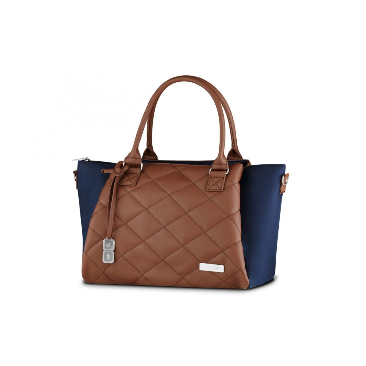 Practical as a changing bag, elegant as a handbag. The luxurious Royal changing bag is a functional and fashionable accessory in one and the stylish look and feel of its leather elements and fabric impress parents far beyond the nappies phase. The changing bag?s clever layout offers extra storage space with plenty of possibilities to keep all those useful items where they can be found safely and quickly while out and about. Nappies, wet wipes, changes of clothes etc. can easily be stored in the large main compartment, which is secured on the outside with a zip and magnet. Two additional outside pockets, also with magnetic fasteners, as well as several inside pockets in different sizes, are ideal for all those little indispensable things for on the go with a baby. A hygienic changing mat, an insulated, removable bottle holder with clip for attachment to the pram, an extra utility pocket and a water-repellent compartment for damp items are also integrated. With three different carrying options, the Royal changing bag suits every look and type: directly on the pram using the integrated changing bag attachment, as a casual shoulder bag with a leather-look shoulder strap or as a stylish handbag. Small metal feet on the bottom of the bag ensure a secure stand and protection against contamination.