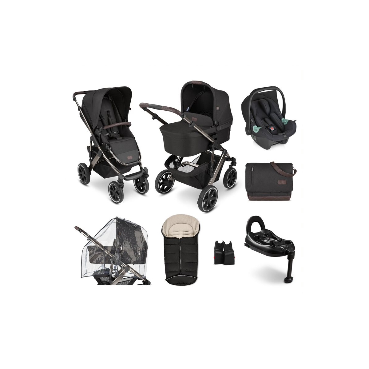 PACKAGE INCLUDES ABC Design Salsa 4 Diamond Edition Pram ABC Design Salsa 4 Dimond Edititon Carry Cot ABC Design Tulip Group 0+ i-Size Car Seat ABC Design Adapter for Tulip ABC Design ISOFIX Base for Tulip ABC Design Winter Footmuff ABC Design Urban Diaper Bag ABC Design Salsa 4 Raincover ABC DESIGN SALSA 4 DIAMOND EDITION 2IN1 PRAM SYSTEM ABC Design Salsa 4 Diamond Edition is Stylish. Luxurious. Exclusive. A new definition of aesthetics. High-quality materials, expressive styling and elegant designs combine for a stunning up-to-the-minute look. The Diamond Edition stands for pure elegance and high design standards down to the last detail. The Salsa is dynamic, lightweight and extremely easy to manoeuvre. A pushchair with personality which will be a reliable companion to you and your baby from your very first day together, wherever life may take you. It?s surprisingly compact when folded down, with a generous maximum weight of 22 kg (seat). When your baby reaches 6 months you can swap the carrycot for the comfortable convertible seat unit, which reclines right back so your youngster can lie flat. Swivel front wheels enhance its agility. Ball bearings and integrated suspension also add to the smoothness of the ride, even on the biggest adventures. Enjoy exciting moments with the Salsa 4 and build memories to treasure for life. The simple elegance of this design completes the noble and exclusive silhouette of this edition. Enjoy sparkling moments ? the noble shining frame made of high-quality chrome is not only on trend, it sets the trend. A stylish look ? whether on the streets in the city or off the beaten track. FEATURES: Suitable from birth to 22kg. Exquisite design with luxurious fabrics Fold down carrycot – enables your baby to lie in the recommend lie-flat position Carrycot comes with a safety mattress, has great air circulation and is suitable for overnight sleeping Reversible pushchair seat unit – allows your baby to face you or the the world around them Adjus