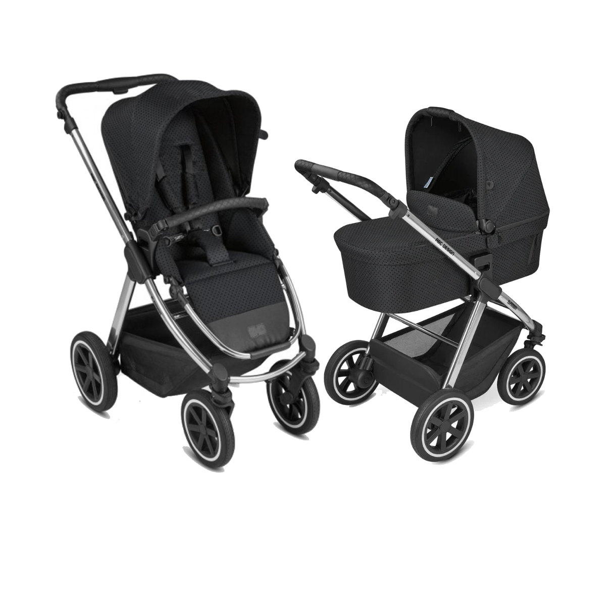 Package Includes: ABC Design Samba Diamond Edition Stroller ABC Design Samba Diamond Edition Carrycot The Diamond Edition Samba boasts impressive style, luxury and premium materials and has been crafted at excellent standards. The ABC Design Samba is the perfect pushchair for your family, capable of tackling any surface and is effortless to handle with a lightweight aluminium chassis and front swivel wheels. Suitable from birth, the carrycot is spacious to provide a perfectly snug environment for your newborn and can be used for overnight sleeping. It promotes air circulation to keep your baby cool and comfortable, features practical one-click memory functionality for easy removal and carrying and folds down for convenience. The Samba’s seat unit is suitable from 6 months to 22kg, offers an adjustable recline with lie-flat position and can be switched between parent and world facing with a simple click on either side of the unit. The backrest is easily adjustable while the adjustable footrest offers additional comfort and can be adjusted to suit your child’s height over the years. The front swivel wheels guarantee ease of manoeuvring, even in narrow spaces and the large, puncture-proof air chamber wheels, premium ball bearings and integrated suspension provide a comfortable journey for your little one. The Samba folds simply and quickly into a compact package, making it possible to store in small car boots and spaces. Once folded, the Samba can free stand to prevent bending and keep your hands free. Features: Suitable from birth to 22kg Exquisite design with luxurious fabrics Aluminium chassis Carrycot promotes healthy ventilation and features one-click memory functionality Carrycot is suitable for overnight sleeping Height adjustable handlebar Swivel wheels Detachable large, puncture proof air chamber wheels High-quality ball bearings and integrated suspension Adjustable back rest with lie-flat position Forward & parent facing seat unit 5-point safety harness Heigh