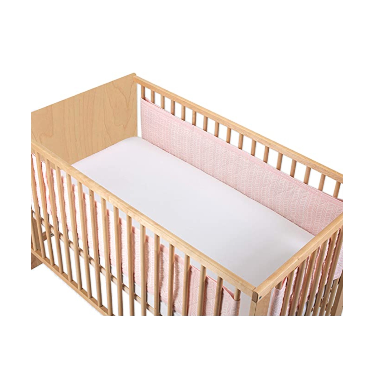 Airwrap is a safe yet fashionable coordinating bumper alternative for your child?s nursery. Unique design means the Airwrap fits more cot/cribs and provides more airflow than other lightly padded cot liners. Designed with natural, breathable cotton muslin outer, mesh inner and adjustable four piece construction to fit your cot/crib whilst breathable, free from bumper ties and maximising airflow for improved comfort, piece of mind and ultimately a better night sleep for you and your bub. Airwrap, safer than a bumper. Australia and the UK?s number one choice for traditional bumper alternative. AIRWRAP understands just how you expect a traditional cot bumper to look and perform, with oodles of safetyfeatures and a range of printed designs you?re going to love! Features: Vented corners for maximum airflow Lab tested and confirmed by world-renowned paediatric respiratory experts to have better Co2 airflow compared to other lightly padded cot liners Adjustable 4 piece design to fit on more cot/cribs. Free from bumper ties. The use of fixed placement bumper ties can prevent the safe fitting on many cot types. Keeps arms legs and pacifiers inside the cot. Protects against bumps and knocks Provides a visual shield Firm yet padded, slim-line and non-pillowy Provides less leverage from climbing when fitted properly Natural cotton muslin outer layer and trim with polyester mesh inner. Machine wash Tested for breathability, quality and hazardous elements in accordance with global standards Patented multi-layer technology Dimensions: 2 sided: 95cm (l) x 27cm (h)