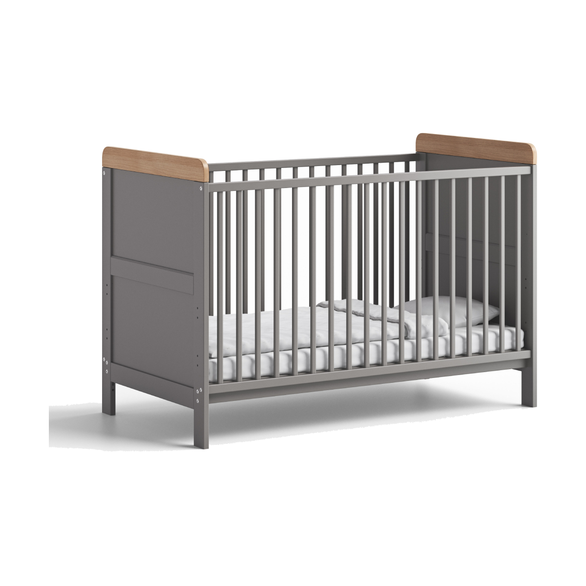 The classic design with a clean, grey finish is sure to impress in any home and a 3-position base means you can vary the cot height to best suit your little one and make it kind on your back when you put them in or lift them out. Protective teething rails on both sides look after your child while also ensuring your cot bed continues to look good. Once your child is old enough to go into a proper bed, the cot can be adapted into a toddler bed by removing the side rails, helping to make this tricky transition much easier and comforting. FEATURES: Birth – 4 Years Converts to toddler Bed Comes with teething rails Adjust 3 mattress heights DIMENSIONS: Dimensions: L 153 x W 78. 6cm x H 91cm Weight: 20. 55Kg