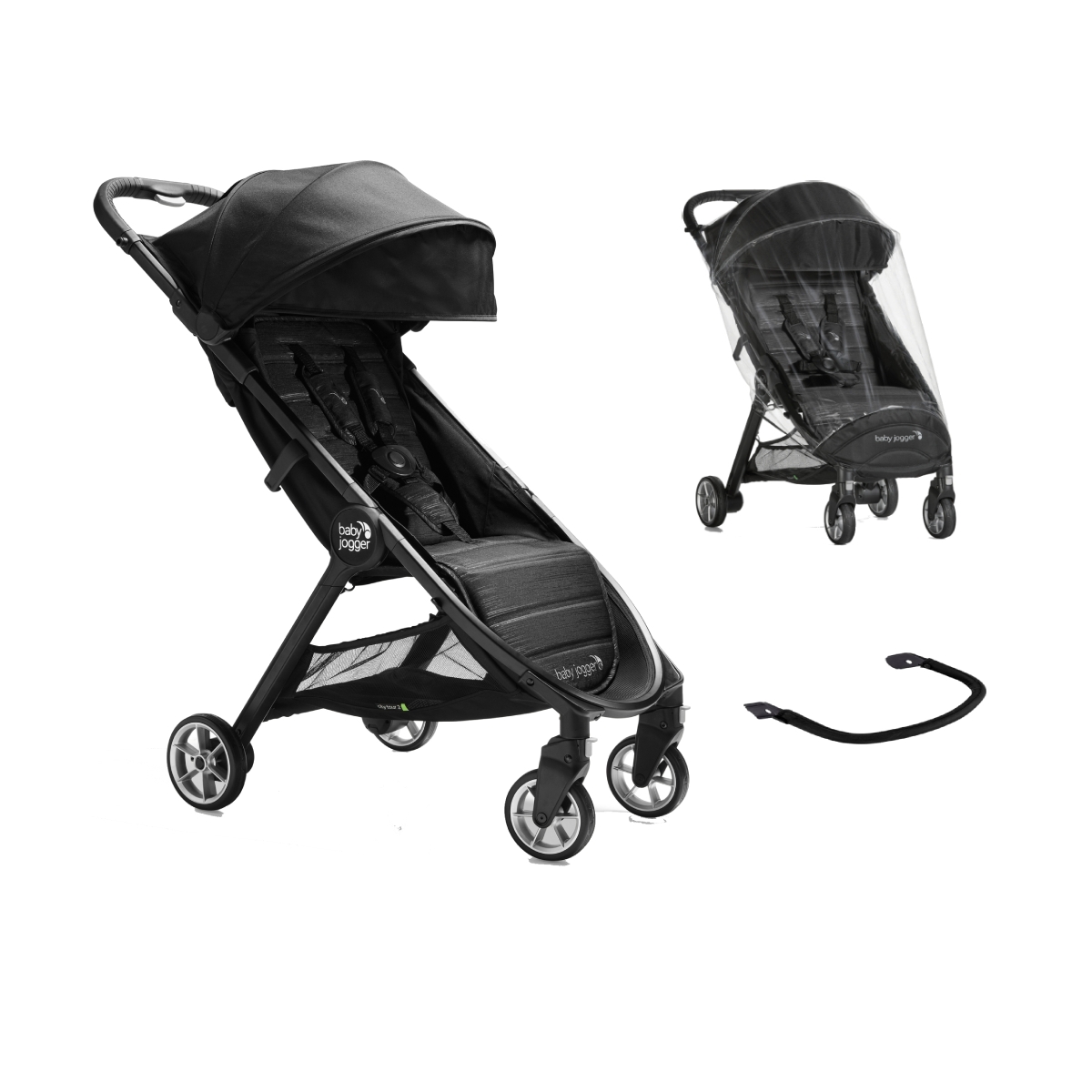 Package Includes: Baby Jogger City Tour 2 Compact Fold Stroller Baby Jogger City Tour 2 Single Belly Bar Baby Jogger City Tour 2 Single Raincover Baby Jogger City Tour 2 Compact Fold Stroller The City Tour 2 folds small for big adventures. Now newly redesigned with infant car seat connection and carry cot compatibility so you can stroll from birth or with toddler on the go. The ultra-compact one hand fold and included carry bag make the City Tour 2 the ultimate travel companion. Weighing only 6. 5kgs, the fully featured stroller includes multiple recline positions, adjustable calf support, UV 50+ canopy and a comfortable padded seat with added depth. Add-on accessories allow for easy customization of the City Tour 2 stroller so you’re equipped to carry on with your day, wherever it may lead you. Features: Suitable from birth to 5 years Total capacity 27kg (22kg in seat and 5kg in basket) Ultra-Compact One-Hand Fold Durable Composite Tires Adjustable Calf Support Near Flat Seat Recline UV 50+ Canopy with Peek-a-boo Window Carry Bag included Storage Basket 5-point harness Dimensions: Open H99x W49. 5 x L96cm Folded H19x W49. 5 x L60cm Net weight 6. 5Kg Baby Jogger City Tour 2 Single Belly Bar The city tour? 2 Belly Bar easily connects to the stroller to give your child a safe and comfortable area to hold on to while strolling. Baby Jogger City Tour 2 Single Raincover Keep your little passenger protected from any sudden downpours! This raincover for the Baby Jogger City Tour 2 Pushchair has been manufactured from non-toxic, environmentally friendly materials to keep children protected from the rain. It also has a handy zipped panel enabling parents to have access to their child at any time.