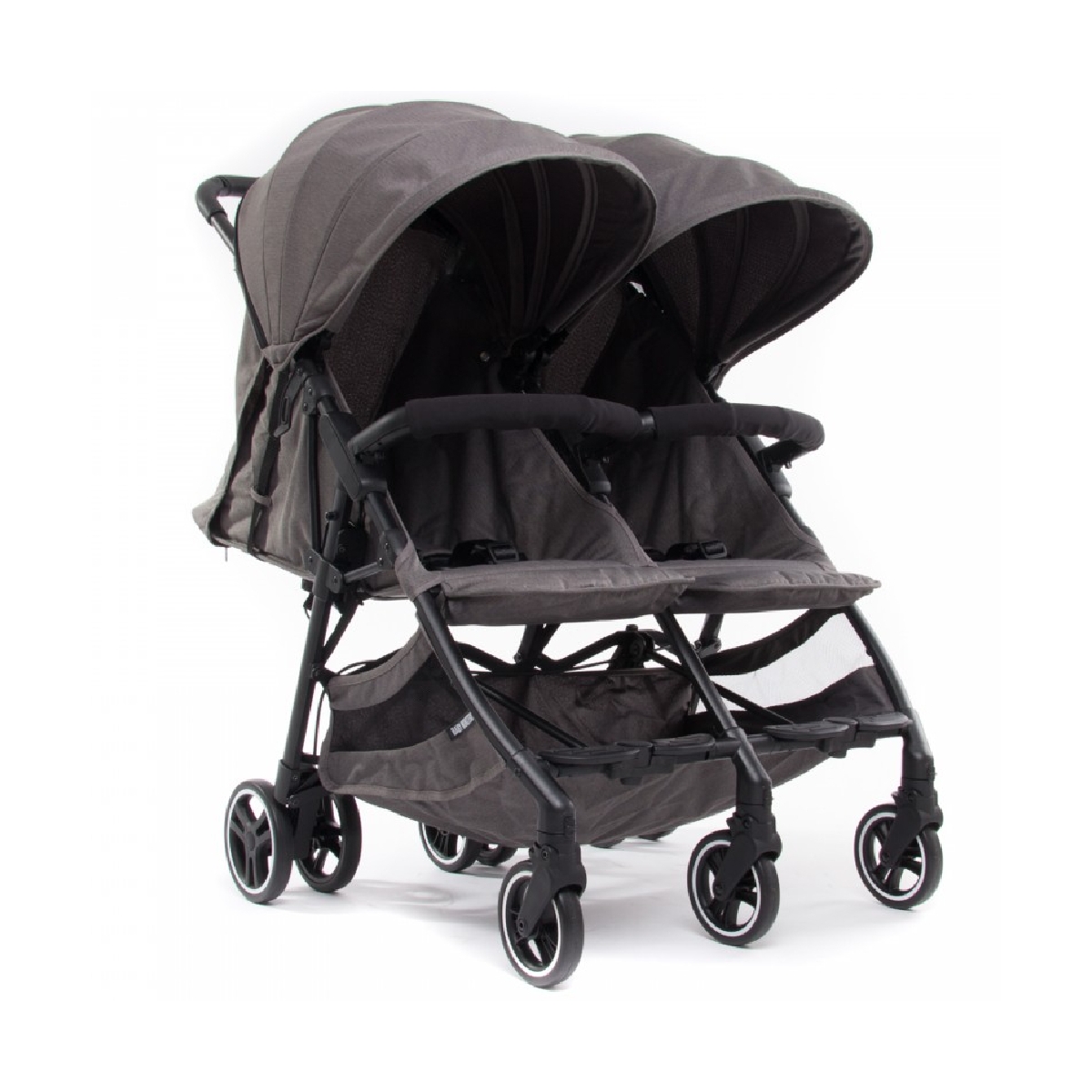 The Baby Monsters Kuki Twin is an ultra-compact and lightweight twin stroller which is ideal for exploring with your little ones. At only 70cm wide, it fits easily through standard doorways and weighs less than 10kg making trips with two more manageable. The forward-facing stroller seats recline independently to a near-flat 170° and feature adjustable calf rests and an extra-long UPF50+ hoods making them a comfortable place to nap on the move from birth to around 4 years old (or 22kg). The compact fold makes Kuki Twin easy to store and transport and is an ideal travelling companion. Whether exploring your city or travelling the world, it manages any terrain thanks to anti puncture EVA wheels and pivoting, 3-front wheel suspension (removable for easy cleaning). Little ones travel safe and secure thanks to the independent bumper bars, and 5-point padded seat harnesses. To make things easier for you, the shopping basket is extra-large, meaning you can keep essentials handy. Available in a variety of modern colours, the Kuki Twin is fashionable, practical and compatible with a range of accessories including a carry bag for storage and transport, and universal footmuffs (all sold separately). Features: Each seat suitable from 0 months to 15kg Only 70cm wide, perfect size for doors and elevators Ultra-compact fold 67 x 44 x 26cm Extra-long UPF 50+ hoods 40cm backrests with near-flat recline Adjustable footrests Bumper bars included 3-front wheel suspension Removable front wheels with swivel lock Anti-puncture EVA tyres Large shopping basket Rain cover included Dimensions: 85 x 70 x 101cm Weight: 15. 5kg