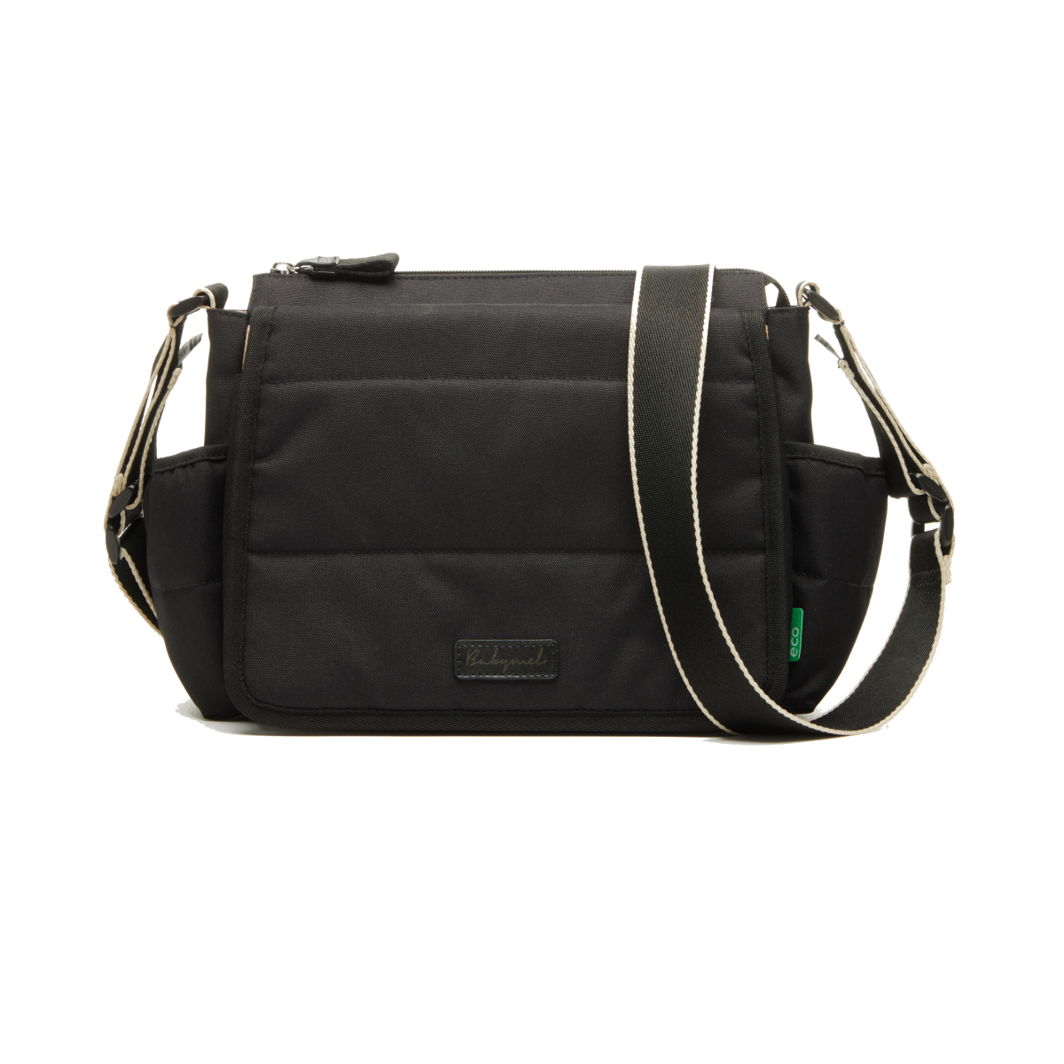 The Stroller Bag Eco is designed to store your daily essentials (and then some). The zipped closure lets you store your valuables securely, while leaving enough space for nappies, wipes, snacks and more. Attached to your stroller with our patented built-in stroller straps, or sling across your shoulder and wear as a stylish handbag. This is a must-have piece of kit for any parent. Features: Made from recycled plastic bottles Water resistant outer material and lining Wide main opening with secure zipped closure Long shoulder strap with patented integrated stroller straps Two side bottle pockets Easy access wipes pocket Insulated bottle sleeve Elasticated loop to keep bottles upright Compact size, ideal for attaching to buggy Care: Wipe clean with a damp cloth and leave to dry naturally Dimensions: Size: 25cm x 36cm x 12cm / H10″ x W14″ x D4. 5″ Weight: 0. 3kg / 0. 7lbs