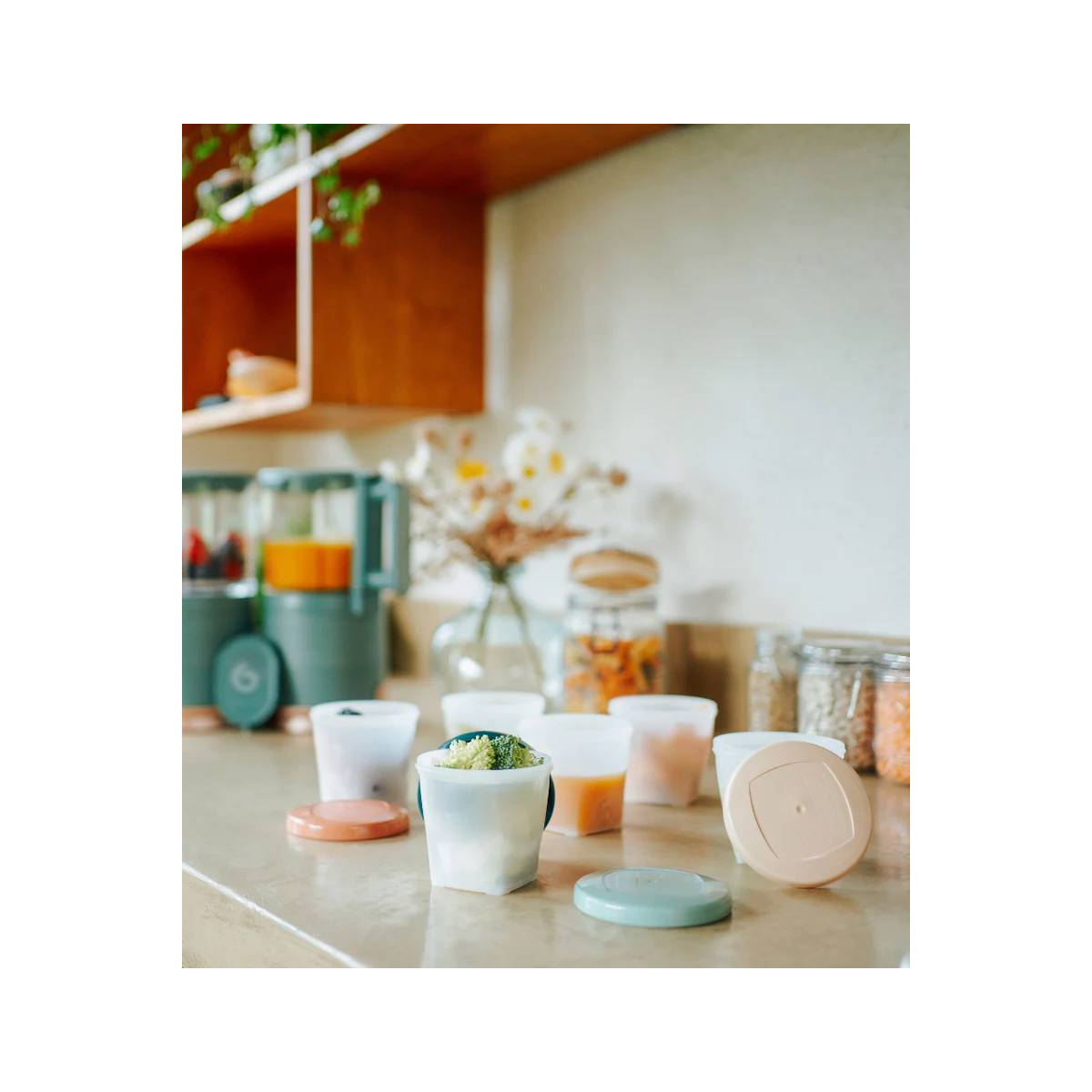 Now that your baby is ready to start weaning onto solids, it’s time for them to explore all the delicious flavours of varied food made by yourself! Here at Babymoov, we have created a range of eco-designed, French-made storage tubs made from 94% plant-based material! They mean you can safely store, carry and reheat your baby’s food, whilst caring for the environment at the same time. This is because, as well as being made in France, the Babybols food containers are made from 94% sugar cane. As sugar cane is a plant that consumes very little energy and water, it means we can reduce our environmental impact. Using this plant also gives the Biosourced Babybols a slightly opaque appearance. The rewritable surface on the lids enables you to label the contents and note the date made. They are graduated for accurate dosing, taking you through all the different stages of the weaning process. Really practical, they can be sterilised and kept in the freezer or fridge. Don’t worry about reheating them: they are heat-resistant! You can put them in the microwave, bottle warmer and bain-marie. The biosourced Babybols are stackable, meaning they can be easily stored to save space in your cupboards. This kit of 16 storage tubs contains 8 storage tubs of 180ml and 8 of 250ml, the perfect sizes for baby’s savoury or sweet meals. FEATURES 8 x 180ml and 8 x 250ml storage containers made from 94% plant-based material derived from sugar cane Made in France Guaranteed free from BPA, PVC and phthalates Practical for storing and transporting home-made meals Graduated containers Rewritable surfaces for labelling the contents and noting the date made Screw-on lids Sterilisable (max 80°) Suitable for the microwave (max 30 seconds at 800W), bain-marie and bottle warmer Dishwasher-safe Can be stored in the refrigerator or freezer DIMENSIONS 40 x 30 x 30