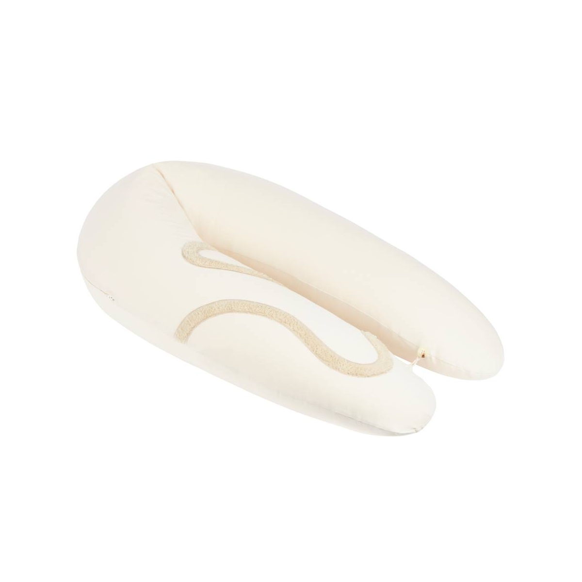 The B. LOVE organic cotton maternity pillow is supportive and relaxing. Enjoy unrivalled comfort whilst bonding with your baby thanks to the extremely fine, silent microbeads. Mums-to-be know that a maternity pillow is exactly what they need for a great night’s sleep before their baby is born! This pillow is designed to soothe any pregnancy-related aches and pains (backache, lumbar pain, tightness in the lower abdomen, heavy legs, etc.). It fits around you whatever position you are in with its ergonomic shape and ultra fine microbeads. B. LOVE also brings you unrivalled comfort with its super soft and stretchy organic cotton cover. Whether you are sitting or lying down, in bed or on the sofa, the pillow moulds to your body shape to create a cosy cocoon of softness. You can even use it in your pre-natal yoga class, open or closed using its fastening system. Once you’ve brought baby home, this adaptable pillow takes on a new lease of life! It can be used for easier breastfeeding or bottle-feeding. Its slightly sloped shape means you will always be at the right height and in a comfortable position, whilst its thinner ends are great for propping against your back. A fastening system holds the pillow in place and leaves your hands free for feeding your baby. Here at Babymoov, we love products that last a lifetime. That’s why you can use your pillow for reading or chilling out in front of the television. What’s more, the pillow has a secure zip fastening so it can be refilled with microbeads. This offer includes a terracotta cover featuring ethnic motifs in warm colours, along with a second ecru cover with an understated ethnic motif. To take care of future generations, we are gradually changing our manufacturing and consumption methods as well as working together to embrace more environmentally-friendly practices: – The B. Love maternity pillow is made in Europe, thereby minimising our manufacturing carbon footprint- As a hallmark of environmental responsibility, the pill