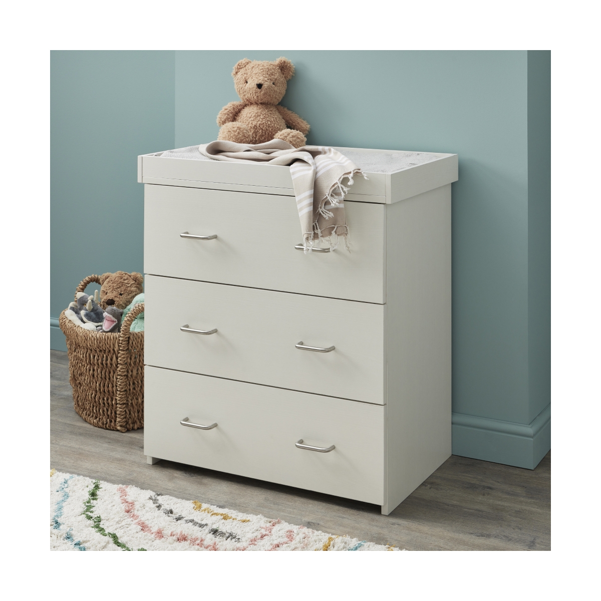 The Caro Chest Changer, part of the Caro collection is the ideal starting point for your nursery decor thanks to its timeless style and woodgrain finish. The changer on the Caro Chest of Drawers can be taken off, so once your baby is about 12 months old, you can turn it into a more traditional chest of drawers. There are three full-sized drawers, giving you plenty of space to store all your little one?s clothes. Features: Combined changer and chest of drawers Removable changer top 3 full sized drawers Changer suitable from birth to 12 Months (11kg) Matching Caro collection Beautiful textured wood finish Requires a changing mat up to 75 x 45 cm (NOT INCLUDED) Dimensions: Assembled Size : L 80 x D 50 x H 90 cm
