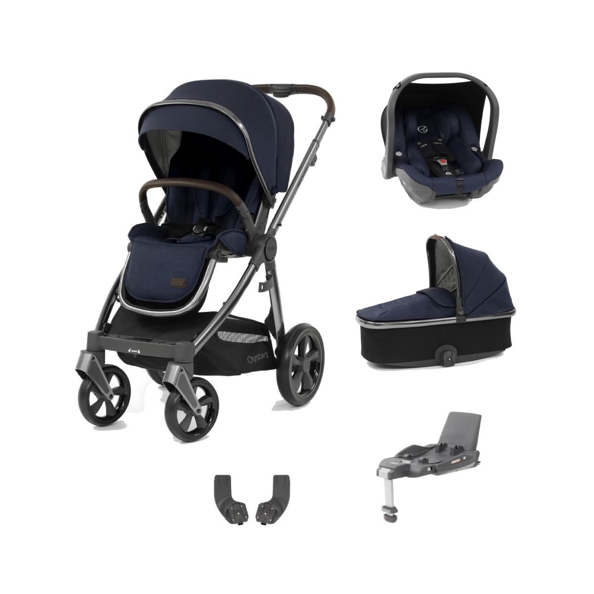PACKAGE INCLUDES: Baby Style Oyster 3 City Grey Finish Stroller Baby Style Oyster 3 City Grey Finish Carrycot Babystyle Oyster 3 Capsule Infant i-Size Car Seat Babystyle Duofix i-Size Base Baby Style Oyster 3 Multi Car Seat Adapters Baby Style Oyster 3 Stroller: The versatile Oyster 3 can be used from birth, thanks to its full lie-flat recline (which can be used whether the seat is positioned forward facing or parent-facing on the chassis and the leg rest can be adjusted too- ideal for naptimes. Keep your little one strapped in safely using the 5-point harness which features softly padded shoulder pads and a headrest for further comfort. You can keep your little one safely out of harmful sun’s rays with the large canopy. It features UV50+ protection, a pull-out sun visor and even a zipped extension to the canopy for when further cover is needed. A ventilation net in the canopy ensures good airflow on those warmer days and an insect net is hidden in a small pocket underneath the seat’s footrest so your little one can travel comfortably. The canopy can also grow as your child does- simply press the release buttons in and you can adjust the height of it and the harness on the chassis without having to rethread the straps. This plus the newly designed strong chassis means that the Oyster can be used all the way up to 20kg for superb longevity and great value. The seat unit can be removed easily and reversed on the chassis, or replaced with the Oyster 3 Carrycot or an Oyster Capsule i-Size infant carrier for when you want to turn it into a 3-in-1 travel system. You can fold the Oyster 3 with the seat in place using an intuitive system and folds extremely compactly for a pushchair of its size. When folded, the chassis auto-locks for your convenience and free-stands- great for storage and a pull-out handle makes it easy to transport the pushchair. Underneath the seat is a large shopping basket- combined with the extra height from the seat sitting higher on the chassis, and wit