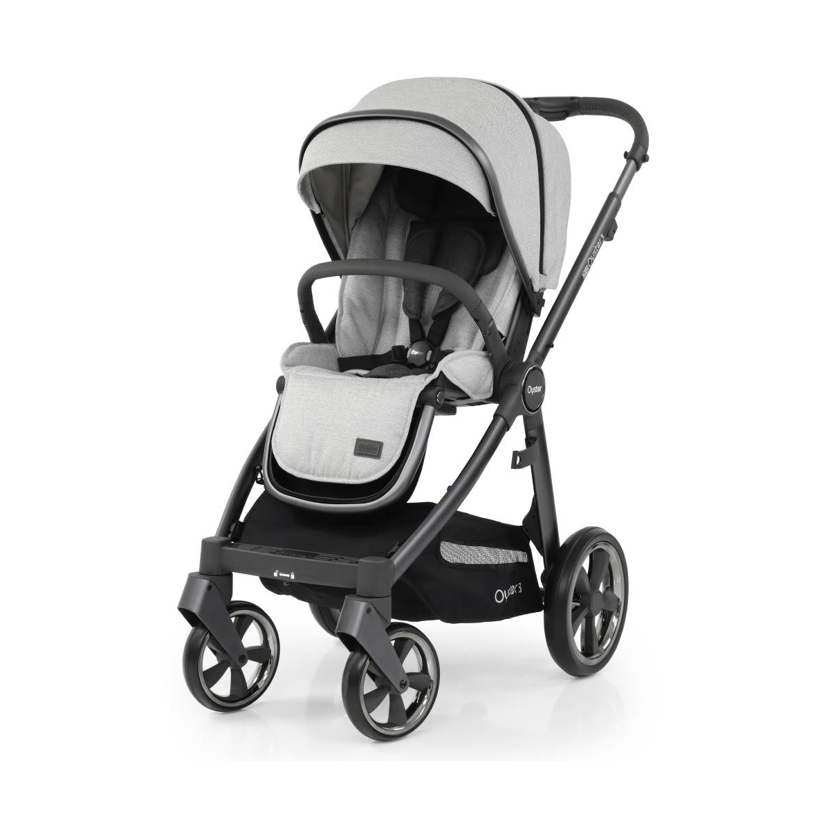 The versatile Oyster 3 can be used from birth, thanks to its full lie-flat recline (which can be used whether the seat is positioned forward facing or parent-facing on the chassis and the leg rest can be adjusted too- ideal for naptimes. Keep your little one strapped in safely using the 5-point harness which features softly padded shoulder pads and a headrest for further comfort. You can keep your little one safely out of harmful sun’s rays with the large canopy. It features UV50+ protection, a pull-out sun visor and even a zipped extension to the canopy for when further cover is needed. A ventilation net in the canopy ensures good airflow on those warmer days and an insect net is hidden in a small pocket underneath the seat’s footrest so your little one can travel comfortably. The canopy can also grow as your child does- simply press the release buttons in and you can adjust the height of it and the harness on the chassis without having to rethread the straps. This plus the newly designed strong chassis means that the Oyster can be used all the way up to 20kg for superb longevity and great value. The seat unit can be removed easily and reversed on the chassis, or replaced with the Oyster 3 Carrycot (sold separately) or an Oyster Carapace i-Size infant carrier (sold separately) for when you want to turn it into a 3-in-1 travel system. You can fold the Oyster 3 with the seat in place using an intuitive system and folds extremely compactly for a pushchair of its size. When folded, the chassis auto-locks for your convenience and free-stands- great for storage and a pull-out handle makes it easy to transport the pushchair. Underneath the seat is a large shopping basket- combined with the extra height from the seat sitting higher on the chassis, and with a separate pocket inside so you can stay organised, you can take everything you need along for the ride. The chassis of the Oyster 3 has been beautifully designed with large, turbine-style wheels with ER-foam tyres which