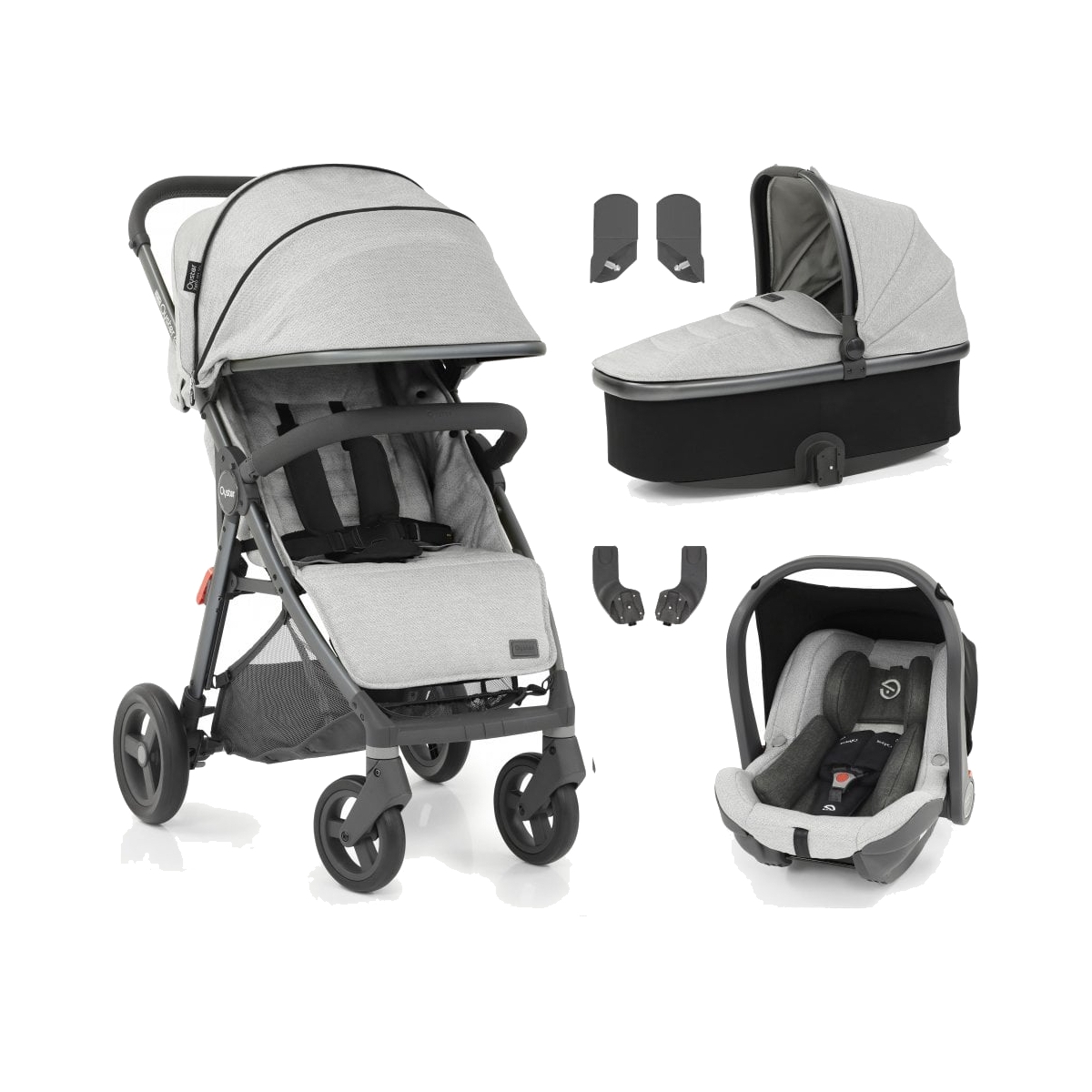 Package Includes: Babystyle Oyster Zero Gravity Stroller Babystyle Oyster Zero Gravity Carrycot Baby Style Capsule i-Size Car Seat Carrycot Adaptors Car Seat Adaptors Baby Style Capsule i-Size Car Seat With the new easy gravity fold which freestands by itself, the new Oyster Zero Gravity is a perfect from baby to toddler stroller. A lightweight stroller, with a super spacious and comfortable fully reclining seat, the Oyster Gravity Zero is a versatile from birth travel system or a perfect second stroller, suitable for children up to 22kg. It features a new hub design and city grey chassis, new central brake pedal, a large canopy ventilation window and of course the new gravity fold. The Oyster Zero Gravity also features a 5-point padded safety harness and XL extendable hood (UPF 50+). Features: New gravity fold ? freestands by itself after clicking the primary lock and two foot pedals Lightweight stroller ? Cleverly engineered, weighing just 8. 5kg Lockable swivel wheels ? Agile and puncture free, perfect for urban strolling All-round suspension ? Rear spring and cantilever front suspension for optimum comfort on uneven terrain Lie-flat recline ? Fully reclinable seat (suitable from birth) Xl extendable hood (UPF 50+) ? Has a flip-out reflective sun visor for extra shade, perfect for the low winter sun Adaptable travel system ? Use with Carrycot or Car Seat (from birth) (Available separately. Adaptors required) Spacious shopping basket ? Perfect for all those essentials, with a pocket for your raincover. Dimensions: Weight ? 8. 5kg Folded ? L68, W59, H28cm) Fully open ? L87, W59, H104cm Seat ? W46, D24cm, Full recline ? L88cm Baby Style Capsule i-Size Car Seat Suitable from birth, the Capsule i-Size car seat offers an amazing mixture of luxury, comfort, and premium safety so your child can be safe and comfy in style. The Capsule features an amazing side-impact defense system for optimum protection in the event of collision and meets the highest standard of car seat safet