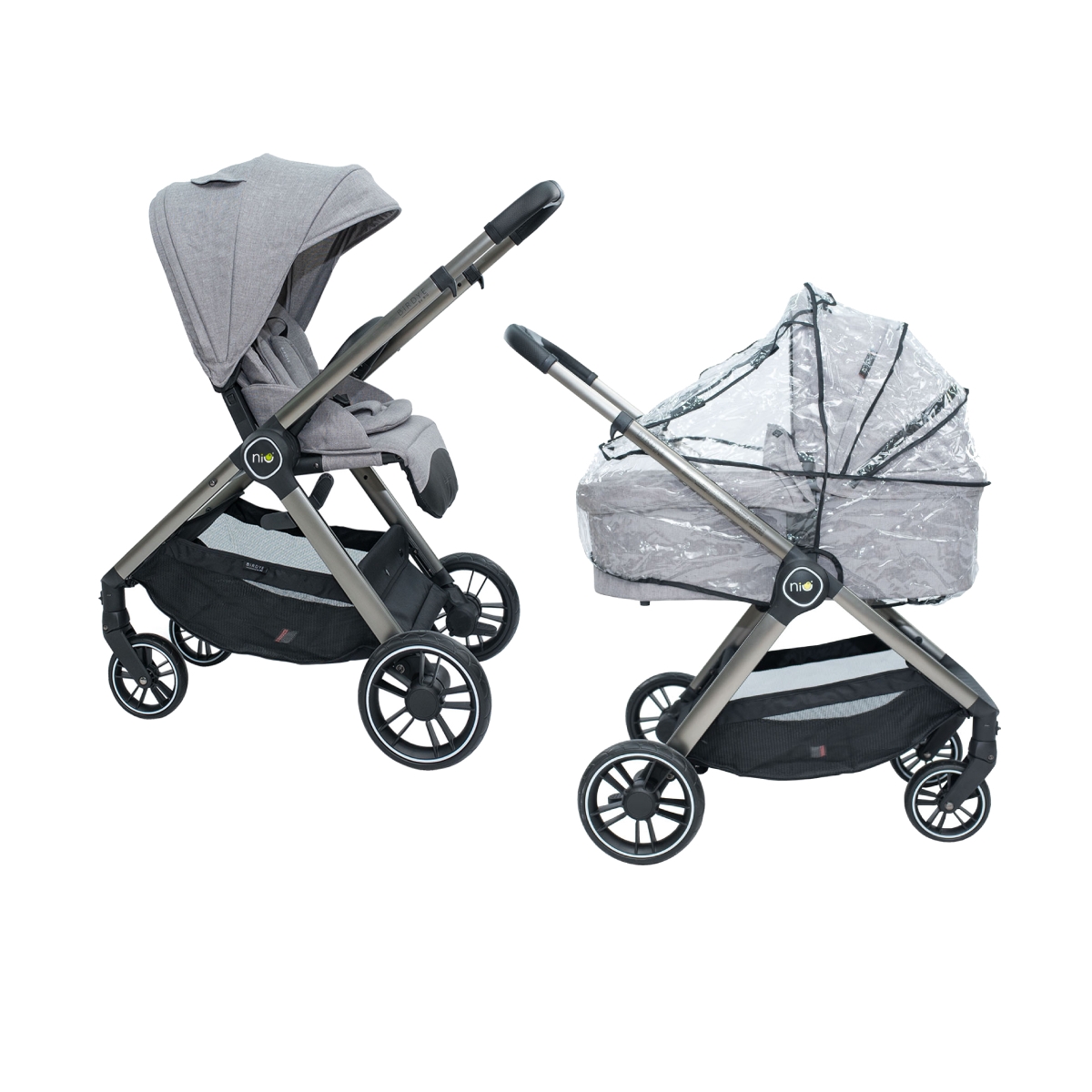 Package Includes: Bizzi Growin Birdye Stroller Bizzi Growin Birdye Carrycot Bizzi Growin Raincover Bizzi Growin Universal Car Seat Adaptors Birdye accompanies your baby from birth protecting him and adapts your lifestyle to help you in the task of parenting. A very equipped cart that provides comfort, safety and freedom for you and your baby. Features: Suitable from birth to 22kg Reclining backrest 3 positions Aluminium Chassis Wheel release button Basket included Bumper bar removable High quality polypel handlebar 50+ UV protection Shock absorbing 4 wheels Adjustable footrest Height Adjustable