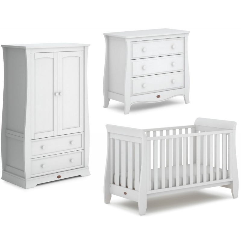 Package Includes: Boori Urbane Sleigh Cot Bed Boori Sleigh 3 Drawer Chest Boori Sleigh Wardrobe Boori Urbane Sleigh Cot Bed: The Sleigh Urbane Cot Bed offers a beautifully modern interpretation of a timeless classic, it has unmistakable sleigh detailing but features a sleek and petite silhouette. This stylish baby cot is crafted with sustainable solid wood and has the ability to transform into a toddler bed, lasting you from birth to around 5 years. A Toddler Guard Panel can be purchased separately for additional peace of mind. Features: Our Sleigh Urbane Cot Bed is crafted with sustainable solid Australian Araucaria wood. Finished in our unique Eco-Blend Bio-Paint which is made with renewable plant extracts. Converts from cot to toddler bed suitable from birth to around 5 years. Option to rotate the fixed side panel to provide a low side when converted to toddler bed for greater safety and stability. 2 base heights. Higher base height for easy access to newborns, lower base height for when baby is able to pull themselves up. Packed flat for easy home assembly with full instructions included. Toddler Guard Panel available to purchase separately. 5 Year Warranty This furniture carries a 5 year manufacturer?s warranty as testimony to the quality and longevity of the range. Easy Assembly This furniture is easy to assemble. Full instructions are included. Sustainable Australian Timber We use natural, sustainable materials that are good for your home and the planet. We use timber from Australia and Europe famed for its durability and quality, and hand select each piece to ensure we use the most stunning grains. Eco-Blend Bio-Paint Our unique Eco-blend is an environmentally-friendly paint finish made with renewable, non-toxic plant extracts including soy bean and corn. As well as enhancing the natural beauty of our wood, these natural ingredients will help reduce the chemical exposure in your home. Dimensions: Height: 97cm Width: 78cm Length: 153cm Requires Boori Cot Bed