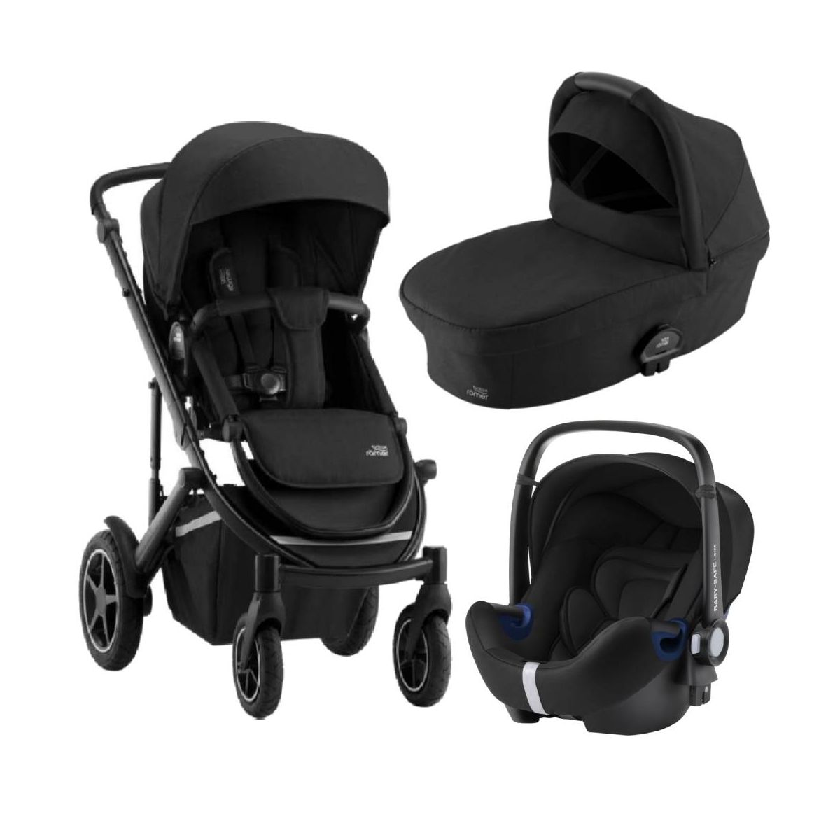 THIS PACKAGE INCLUDES: Britax Smile III Pushchair Britax Smile III Carrycot Britax Baby Safe 2 I-Size Car Seat BRITAX SMILE III PUSHCHAIR: Based on our four-time test winner, the brand-new SMILE III will help you care for what matters most ? your baby. The slim 57 cm wide design offers multiple travel system options and accompanies you and your baby all the way up to 22 kg wherever you go ? whether it?s busy city streets or bumpy country lanes. Features: Maximum child weight: 22 kg Narrow base Central & front wheel suspension Air-filled wheels Extra-long backrest Extra-large hood with ventilation window Extra-large storage basket Glow in the dark 3M? reflector stripes Compact freestanding fold Lie-flat backrest and footrest Reversible seat unit Adjustable comfort handle Flip flop friendly safety brake Easy adjustable harness Front swivel wheels Dimensions: Weight complete pushchair: 13 kg BRITAX SMILE III CARRYCOT: For the first months of your baby?s life a carrycot is the best and healthiest choice when you take long strolls, because it offers your little one a complete lie-flat position. The SMILE III Carrycot with its soft touch and grip fits perfectly on your SMILE III pushchair. Providing plenty of room for your baby to grow until they are ready to move to the seat unit it provides a padded environment, and thanks to the generous hood and apron your baby will be safe and protected at all times. Features Quick and easy to handle Protection from all elements Easy transportation BRITAX BABY SAFE 2 i-SIZE CAR SEAT: The BABY-SAFE² i-SIZE accompanies your baby from birth up to 15 months. Thanks to the removable newborn insert and lie-flat technology, the infant carrier offers an ergonomic position for your newborn and enough space for your little one to grow to 83 cm in height. All designed to keep your baby safe as well as comfortable on any journey. Features: Newborn insert Superior Side Impact Protection ? SICT Lie-flat technology Easy adjustable headrest and harn