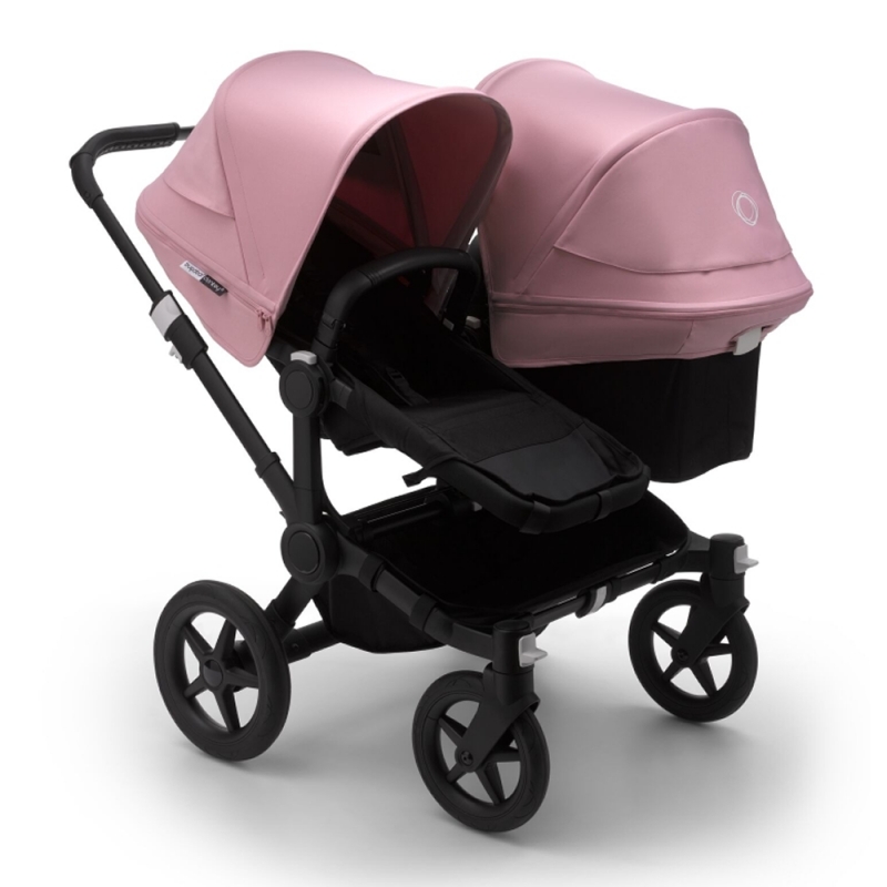 This Package Includes: Black Chassis Black Style Set Black Sun Canopy x 2 Black Duo Extension Set Black Duo Fabric Set Two children of different ages can ride in the Bugaboo Donkey 3 Duo! This double pushchair is brilliantly stylish and highly configurable, whether you want your children to face each other, or the same way and a side basket for your shopping for those times when you don’t have both of your children with you. The Duo version of the Donkey contains all the bits you get with the Donkey Mono, but with the addition of an extension pack which includes another seat unit, bumper bar and an extra sun canopy. This beautiful pushchair comes with a trendy black chassis with your choice of stylish base fabrics Features Suitable from birth up to max. 22kg per seat (EMEA/UK/ASIA) Extendable sun canopy with peek-a-boo & breezy panel in one Free positioning of bassinet and seat on the stroller Extra storage with the extendable Side Luggage Basket with a maximum load of 10kg Rotating carry handle for easy of use Changeable bassinet & seat fabric, sun canopy, grips & wheel caps Easy access storage pockets on bassinet Memory buttons to remove bassinet & seat with one hand One hand seat recline 1 Piece compact & self standing fold 2 Piece extra compact fold Beach mode (2 wheel) All fabrics are machine washable Dimensions: Product weight: 13. 9 kg / 30. 6 lbs Large front wheels: 10 inch, rear wheels: 12 inch Large, easily accessible under seat basket with storage pockets Volume: 30 L / 7. 9 gal Weight capacity: 10 kg / 22 lbs)