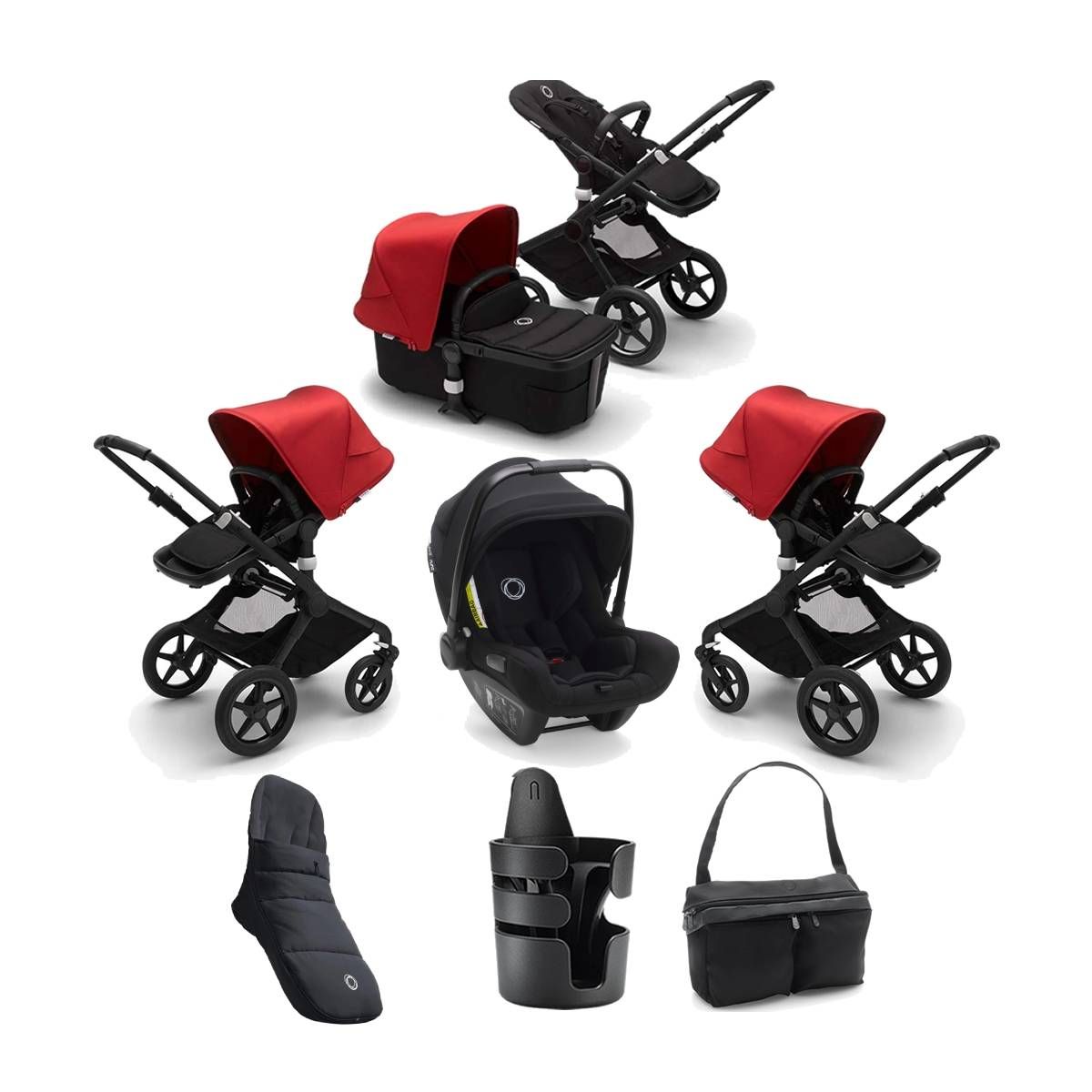 Bugaboo Fox2 7 Piece Bundle-Black/Black-Red