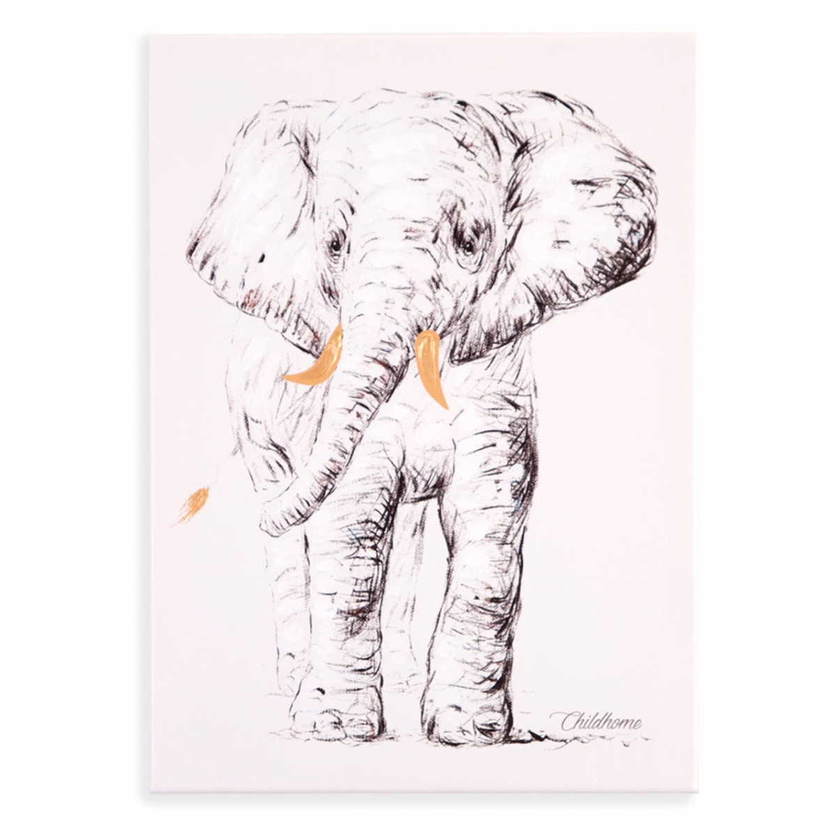 The Childhome Elephant Head Oil Painting (30 x 40 cm) will be a stylish and trendy decoration to your nursery room. This beautiful oil painted canvas features a nicely contrasting black and white Elephant design with golden details. There are also style matching giraffe and elephant paintings available separately to complete Childhome jungle animal canvas set. Features: Stylish and trendy nursery décor Contrasting Elephant design with golden detailing Perfect to combine with two other jungle animals paintings (sold separately) Dimensions: Dimensions: 40 x 30 x 3 cm