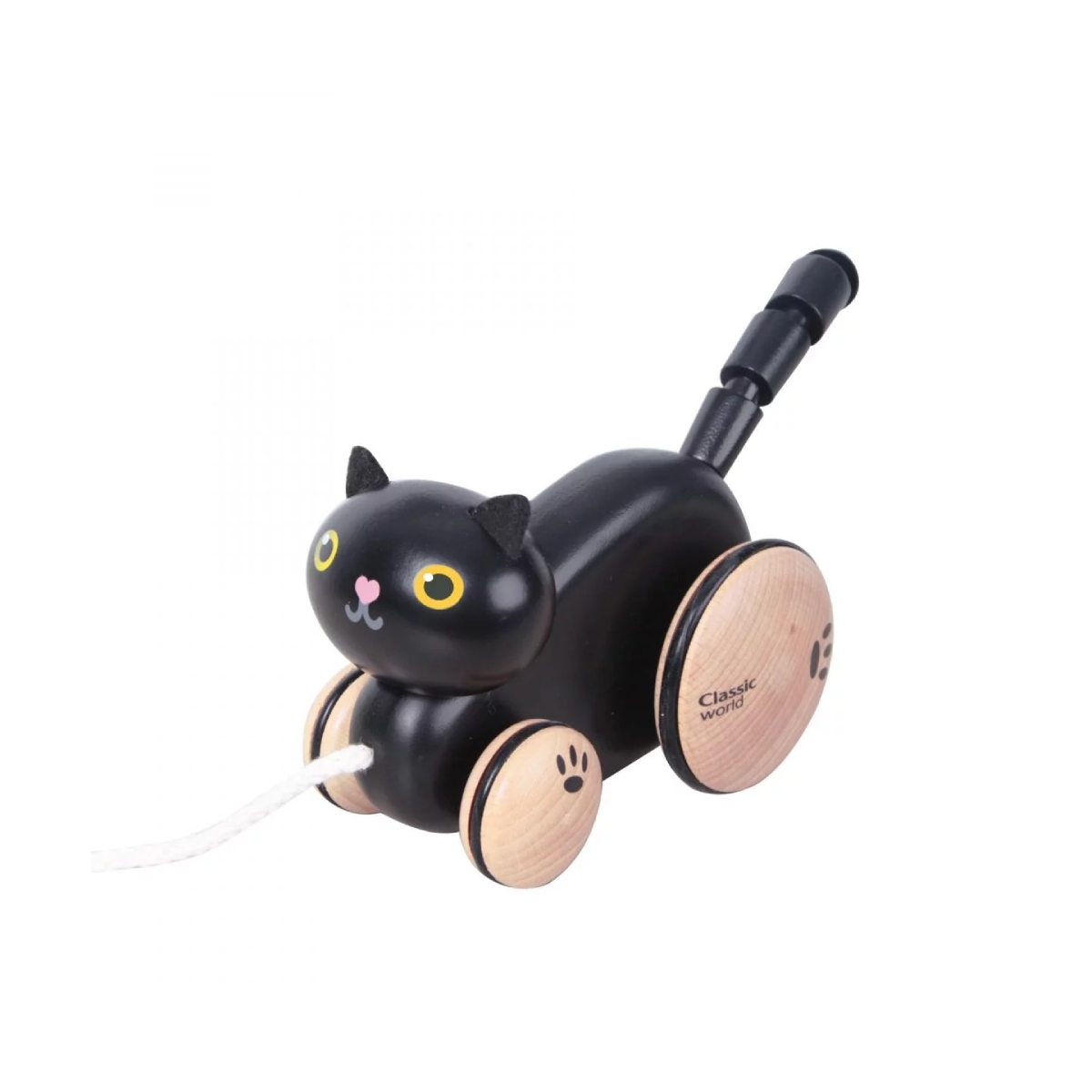 Make learning to walk fun for your little one with this cute pull cat toy. As your little one walks along, the cat?s tail will wiggle which they will want to see again and again encouraging walking! Features: Encourages walking Made from natural, eco-friendly wood Suitable for: 12 months + Dimensions: Size? 20 x 18. 3 x 14. 7cm