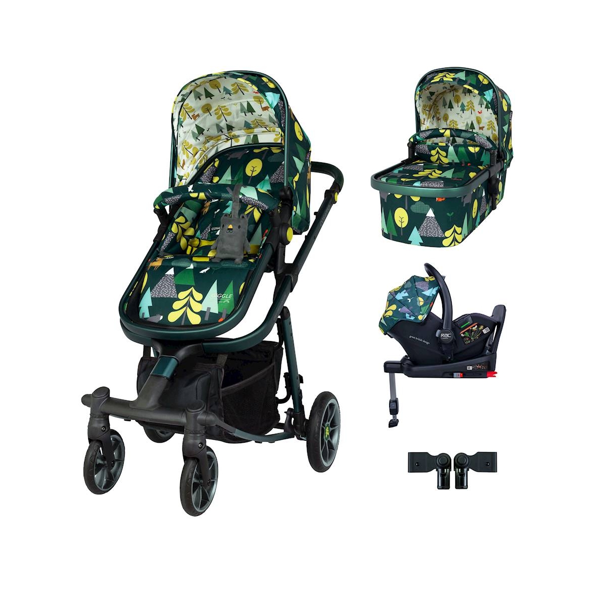 Package Includes: Cosatto Giggle Quad Chassis Cosatto Giggle Quad Carrycot Cosatto Giggle Quad Seat Unit Cosatto Giggle Quad Port i-Size Car Seat Cosatto Giggle Quad Car Seat Adaptors and Raincover Cosatto Giggle Quad Port PLUS I-Size Base Cosatto Giggle Quad Pram & Pushchair: Meet the Cosatto Giggle Quad 3 in 1 pram and pushchair. The mighty 4-wheeled sibling of gold-winning Giggle, with all the same famous features and smooth handling plus added oomph. It?s the ultimate buy, tested all the way up to 20kg so your little one can use it for even longer. This pram offers lie-flat spacious carrycot, with deep padded mattress. Swap it to reversible pushchair seat unit when they?re ready to sit up ? facing you first, then the world. Giggle Quad offers enhanced performance and premium detailing – from deluxe amped-up wheels, to stitched leatherette handle and cuddly travelling companion. From birth and beyond, take your adventure further. 1. Enhanced Performance. Giggle Quad has convex profile tyres and all-round premium suspension for an ultra-smooth effortless glide. The unique tyre formula enhances durability by offering longer lasting tyres that give an even softer ride. Their deep tread handles multi-terrain so you can take your journeys anywhere. Giggle Quad is a dream to push. 2. Comfy All-Round. The luxury carrycot has maximised space to accommodate growing babies. The thick supportive mattress makes it ideal for occasional overnight sleeping. For ultimate freshness and comfort, the zip-in carrycot liner is machine washable. In pushchair mode, customise their comfort with the multi-recline seat – from bright and upright to laid-back lounging. 3. Ultimate Buy. Giggle Quad is designed for the long haul, tested all the way up to a mighty 20kg so your little one can use it for even longer. It has a supersized basket with 3. 5kg capacity – for the biggest of shopping sprees. 4. User-Friendly. Compact Giggle Quad is your go-anywhere, stow-anywhere hero with easy, quick f