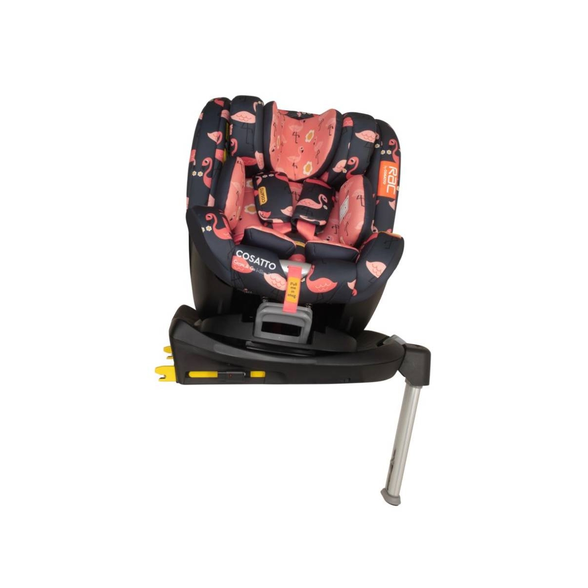 Safety on our roads has always been an important issue for the RAC. So teaming up with Cosatto to develop a pioneering car seat packed with the latest safety innovations was an easy decision. The new RAC Come and Go i-Size Rotate car seat is your ultimate road-trip hero. Taking your precious passenger from birth to 105cm (approx. 4 years), with ERF, R129/ i-Size compliance, exclusive 5 point plus anti-escape system, easy-access rotation, and first-class comfort features. FEATURES: Extended Rear Facing (ERF) i-Size Seat – RAC Come and Go i-Size Rotate is ERF to 105cm (approx. 4 years old) and will grow with your child for extended safety. Why is ERF recommended? In a front-on collision, rear-facing seats distribute force across a much larger area of the back so there?s less pressure on the delicate head, neck and spine. This car seat has had extensive crash and safety testing as part of the latest R129 / i-Size standard. The i-Size standard takes testing further with mandatory side impact and roll over testing – all using the latest crash test dummies – to help create safer car seats. Easy Access Rotation – RAC Come and Go i-Size Rotate can be rotated to side facing for easy access from a car door with the simple pull of a trigger. No more stretching and leaning in when lifting baby out or when doing up the harness. RAC Come and Go i-Size Rotate locks easily into position for the direction of travel required. Safe and Secure ? The contoured seat has secure ISOFIX fitting points and force-absorbing construction. It features the pop out SIPS (side impact protection system). Deep side wing panels and energy absorbing foam padded liners provide side-impact protection. It also has an exclusive 5 point plus anti-escape system. This seat complies with R129 (i-Size) safety standard. Comfort and Safety ? RAC Come and Go i-Size Rotate car seat combines first class comfort with security thanks to plush padding, removable liners, laid-back reclining seat, and adjustable headrest
