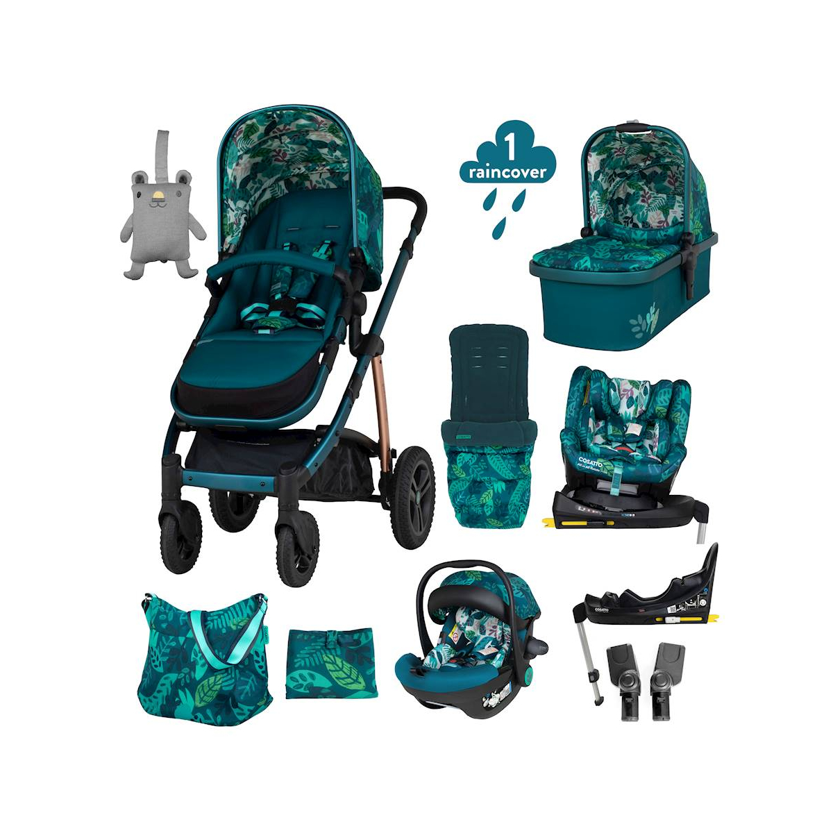 Package Includes: Cosatto Wow 2 Seat Unit Cosatto Wow 2 Carrycot Cosatto Acorn i-Size Car Seat Cosatto Acorn i-Size Base Cosatto All in All 360 Rotate i-Size Car Seat Cosatto Car Seat Adaptors Cosatto Changing Bag Cosatto Footmuff This is the perfect bundle for all your parenting needs. Including the bestselling Wow 2 Travel System which is compact but roomy, has a spacious carrycot and seat unit, multi terrain wheels, luxury tailoring and premium finishes. Plus, the bundle also has both the Acorn i-Size Infant carrier and an All in All 360 Rotate i-Size which is every car seat you will need from birth to 150cm (approx. 12 years) When you place your baby under their Cosatto travel system sensory hood, you?re harnessing early sensory skills ? with designs that encourage engagement. We?re serious about happy babies. From working with the UK?s leading baby labs, to harnessing baby science to drive the development of new products ? we?re committed to bringing the happy to your baby. Wow 2 is at your service. Full of clever contradictions, it?s compact but roomy – with a spacious carrycot for your growing littl?un and a big basket that goes beyond your everyday bits and bobs. This is your clever, compact companion. The All in All 360 Rotate i-Size has had extensive crash and safety testing as part of the latest R129 / i-Size standard and is an all-stages car seat that can be used from 40cm (birth) – 150cm (12 years approx.) and swivels 360 degrees. The i-Size standard takes testing further with mandatory side impact and roll over testing, all using the latest crash test dummies, to help create safer car seats. In addition, this car seat is crash tested beyond the standard R129 speed requirements, in-line with ADAC levels of testing. The Acorn i-Size is suitable from 40cm (birth) up to 87cm (approx. 15 months) and has impact and protection at the core of its design. The Acorn i-Size will transform travel for you and your baby and simply clicks on to your Wow 2 Travel Syst
