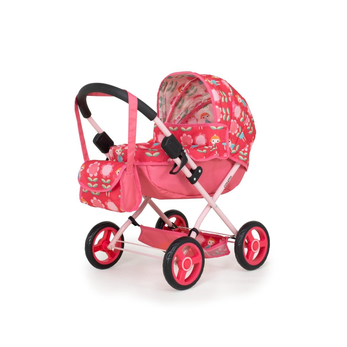 Your littl?un can be just like you now with the Cosatto Wowette Dolls Pram. They can take their dolls with them wherever they go. There?s a lightweight easy-fold frame for handy storage with integrated hood, four sturdy easy-to-manoeuvre wheels, a tray for their bits and bobs plus a matching bag to accessorise. Your littl?un and their dolly will have everything they need. Enhance your child?s imaginative play with the Wowette Dolls Pram in Fairy Garden Rose. It?s suitable for dolls up to 46cm. Daydream amid the daisies with Fairy Garden Rose design. A wave of a wand and you?re flying with silken-winged fairies. Discover storytelling patterns kids love. Includes a changing bag so your littl?un can be just like you and pack their bag for their dolly. Folds with ease so you can pop it in your boot and take it to the park. FEATURES: Enhance your child?s imaginative play with the Wowette Dolls Pram in Fairy Garden Rose. It?s suitable for dolls up to 46cm. Daydream amid the daisies with Fairy Garden Rose design. A wave of a wand and you?re flying with silken-winged fairies. Discover storytelling patterns kids love. Includes a changing bag so your littl?un can be just like you and pack their bag for their dolly. Folds with ease so you can pop it in your boot and take it to the park. Comes with a 12-month guarantee DIMENSIONS: 58cm x 38. 5cm x 59cm Handle Height: Maximum 59cm