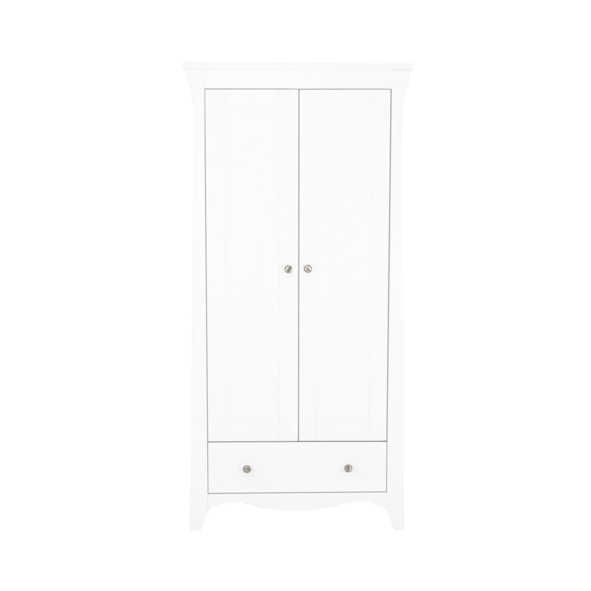 The Clara 2 door double wardrobe is designed to successfully organise your nursery, with 2 removable hanging rails to convert into a full-size wardrobe, a deep storage drawer and handy shelving space, it’s classic styling to transform a modern nursery. Classic curvature with a modern contemporary look, function and style to transform any nursery. Features: Maximum storage Two removable hanging rails Interior shelf Large base drawer Adjustable door hinges Wall strap kit for additional safety and stability 2 Year Warranty Self-assembly required Dimensions: Dimensions: 180 x 85 x 50 cm