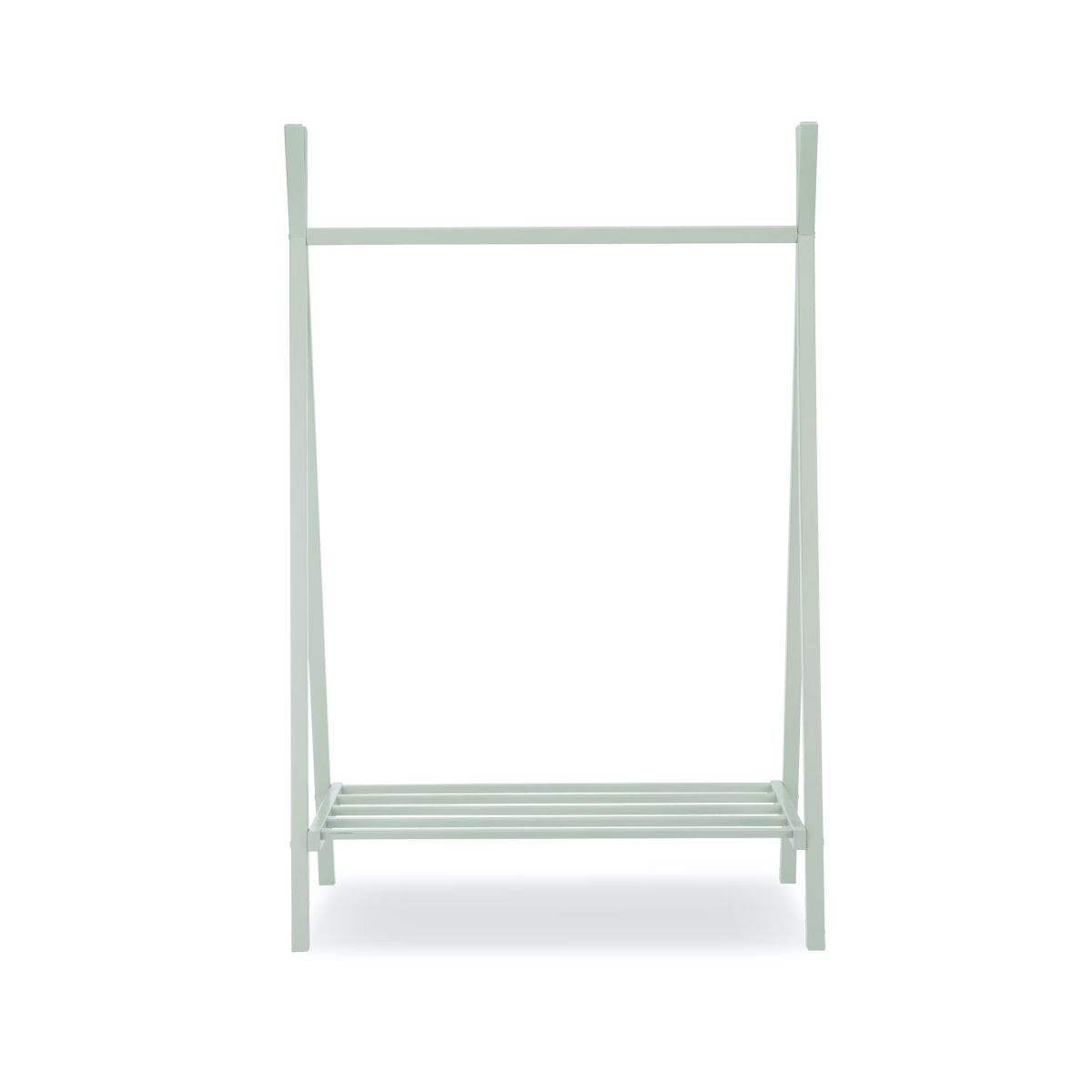 The Nola Clothes Rail is a stylish alternative to the classic nursery wardrobe. Made of 100% sustainably sourced pine wood, the nursery clothing rail has a soft colour, baby-safe paint finish. Nola?s contemporary, minimal design, combined with its bold splash of colour, can turn tiny rooms into truly modern nurseries. The Nola baby clothes rail is a great solution if you?re looking for nursery storage that allows easy access to your baby?s clothes. Its open design means you can simply grab your little one?s outfit, jacket or coat when you need it without searching through drawers or opening a wardrobe. The dress-up rail also has a shelf to keep your baby?s adorable shoes organised. Features: The Nola clothes rail has a simple, contemporary design with a bold splash of colour Features a large shelf ideal for storing clothes, shoes and toys 1 storage shelf 1 hanging rail Perfect for storing and displaying dressing up clothes too Made of 100% sustainably sourced pine wood All our paint is Nitro based that is tested to EN 71-3: Migration of certain elements. It is not water based. This means the paint we use is baby-safe Dimensions: Measures: 84 x 43 x 137cm (L x W x H)