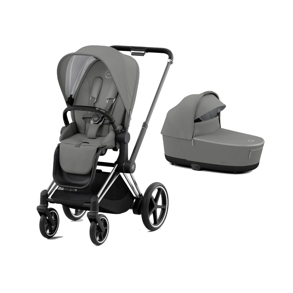 PACKAGE INCLUDES: Cybex e-Priam Matt Black Stroller Frame Cybex e-Priam Seat Pack Cybex Lux Carrycot Cybex e-Priam battery & charger Cybex Priam Seat Raincover Cybex Lux Carrycot Raincover CYBEX E-PRIAM PUSHCHAIR The CYBEX ePRIAM Pushchair boasts an all-new free-of-charge CYBEX app, you can activate the rocking function, control the level of support from the electric motors and check your battery and firmware. The updated design and innovative new functionality make the ePRIAM even more desirable. The new one-pull harness system is a stand-out new feature, bringing greater ease for the parent and greater comfort for little ones. The world-first harness concept can be precision fitted in seconds with just one hand. It’s the perfect fit, every time. One frame; four travel options. depending on the age of the little ones, the ePRIAM is compatible with the Lux Carry Cot, the Lite Cot, or the Cloud Z i-Size infant car seat. The revolutionary smart technology is Intelligent, intuitive and exceptionally innovative, the ePRIAM empowers you to glide up and down hills with ease, and smartly adapts to rough terrains like sand, gravel or cobblestones. Experience the magical sensation of a rocky path made smooth or an impossible climb made suddenly achievable with less of a physical strain for parents. Features: Use from birth to approx. 4 years Recline function with lie-flat option All-wheel suspension ensures a soft, quiet + comfortable ride Freedom to go off-road whenever you want Extendable XXL sun canopy provides UPF50+ sun protection Smart rocking mode rocks the stroller back + forth gently so little ones can nap anywhere + anytime The unique one-pull harness helps you secure your little one in the stroller in seconds, with just one hand Features a spacious + easily accessible shopping basket that can be folded out when needed Onboard sensors detect inclines + signal electric motors to add power, making climbs + descents feel effortless One hand is all you need to recline