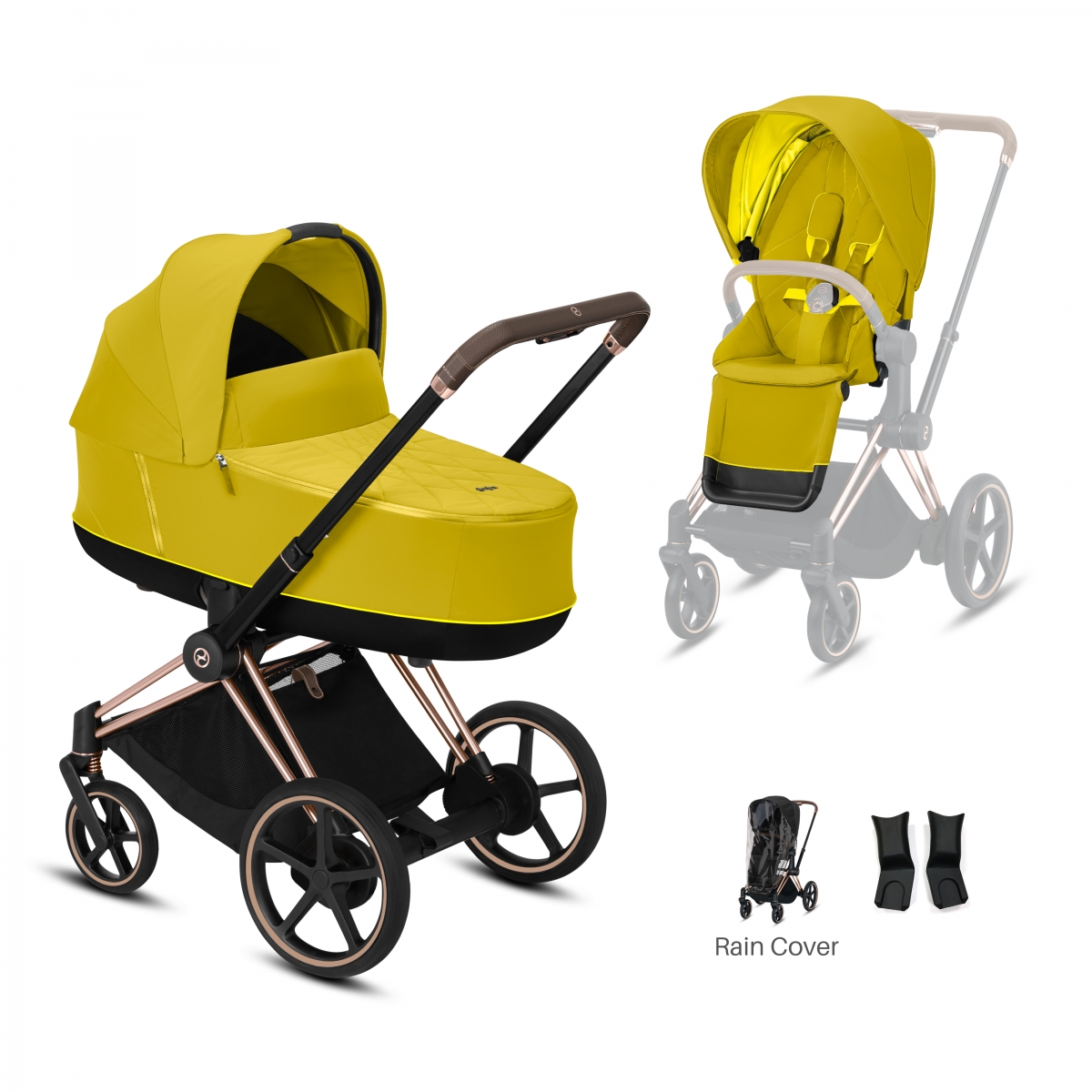 Cybex e-Priam Rose Gold Pushchair with Lux Carry Cot-Mustard Yel