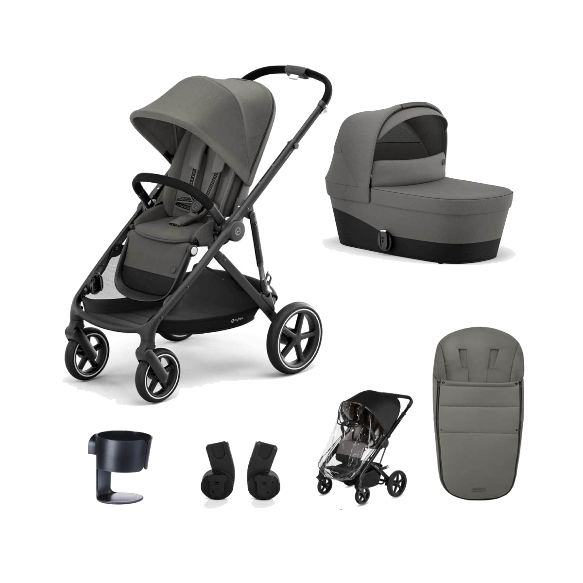 Package Includes: Cybex Gazelle S Pushchair Cybex Gazelle S Cot Cybex Raincover Cybex Footmuff Cybex Cup Holder Cybex Gazelle S Car Seat Adaptors Cybex Gazelle S Pushchair The Cybex Gazelle S Pushchair features a detachable shopping basket as-well as a huge stroller basket under the seat. This is the ideal companion whether you?re visiting the weekly market or browsing stores in the city center. The stroller also grows with your family, supporting over 20 configurations of seat units, cots or any CYBEX infant car seats. Ready from birth, the stroller seat?s ergonomic lie-flat position makes the Gazelle S the ideal choice from the very beginning of your family?s journey. FEATURES: Compact fold Use from birth to 4 years (approx) Sun canopy features a mesh panel Two shopping baskets XXL UPF50+ sun canopy Ergonomic lie flat position The Gazelle S grows with your family, offering endless opportunities to attach different combinations of stroller seats, cots or CYBEX infant car seats DIMENSIONS: Weight: 12. 6kg With a combined basket capacity of 23 kg Folded measurements: H86 x D35 x W65cm Measurements: L930-1060 x W650 x H1000-1100mm Max Weight: 22kg in single mode + 2 x 22kg in duo mode Cybex Gazelle S Cot The Cybex Gazelle S Cot in Deep Black is perfect for your newborn baby, it’s the perfect bed on the go. The Gazelle S Cot is equipped with a soft and comfortable foam mattress supporting a correct lying position for your little one, while a canopy with an inserted mesh window offers shelter and UPF50+ protection from the sun?s rays. The carry handle of the Gazelle S Cot is placed along the sun canopy for easy carrying and attaching to a Pushchair frame. With an interior lining fabric that?s as warm and comfortable as cotton, our biggest CYBEX Gazelle S Cot is not only super-spacious but also offers a comfortable, sheltered place. No additional adapters are needed for the Gazelle S Cot, simply place the cot on the Gazelle frame using the integrated adapters. The Gazelle