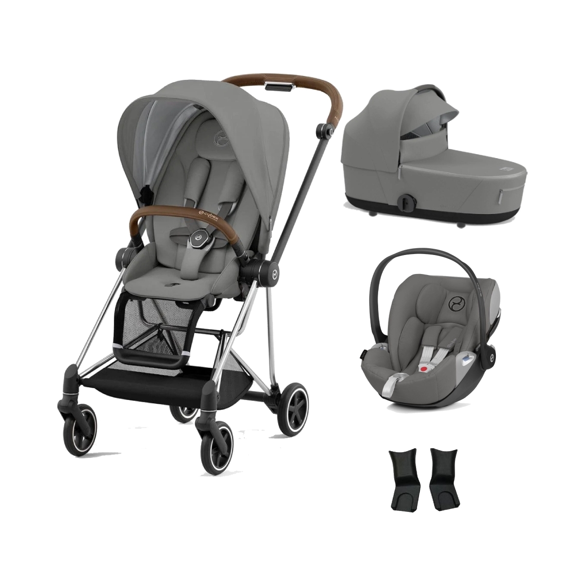 PACKAGE INCLUDES: Cybex Mios Stroller Frame Cybex Mios Seat Pack Cybex Mios Lux Carrycot Cybex Cloud Z i-Size Group 0+ Car Seat Cybex Cloud Z Car Seat Adaptors Cybex Mios Seat Raincover Cybex Mios Lux Carrycot Raincover CYBEX MIOS PUSHCHAIR The CYBEX MIOS Pushchair boasts an updated design with innovative new functionality that makes the MIOS even more desirable. Its lightweight frame makes the MIOS seem as light as a feather and the retro-modern design language is complemented by fine, breathable mesh to ensure a balanced climate. The new one-pull harness system is a stand-out new feature, bringing greater ease for the parent and greater comfort for the child. A world-first this harness concept can be precision fitted in seconds with just one hand. It’s the perfect fit, every time. One frame; four travel options. The MIOS frame is compatible with a stroller seat unit, an infant car seat, and a LUX Carry Cot. Or add a LITE Cot to the stroller seat to carry your baby in lie-flat comfort. An extendable canopy with UPF50+ protection shields your little one from the sun?s glare, while a breathable mesh seat keeps baby cool on hot summer days. And with the Seat Pack?s soft padded harness and seat inlay, your baby can travel in comfort while you travel in style. Features: Use from birth to 22kg (approx. 4 years) Unique one-pull harness helps you secure your little one in the stroller in seconds, with just one hand Recline function with lie-flat option Breathable mesh fabric cools + prevents heat build-up Comfort on the go with a choice of three different leg rest positions Padded comfort inlay provides extra softness + warmth on cooler days Extendable XXL sun canopy with viewing window provides UPF50+ sun protection Adjustable leg rest Convenient backrest pocket One hand is all you need to recline the MIOS Dimensions: Measurements folded: L63 x W50 x H30cm Measurements unfolded: L93-85 x W50 x H108cm Weight: 10. 2kg CYBEX MIOS LUX CARRYCOT The CYBEX MIOS Lux Carrycot Plus