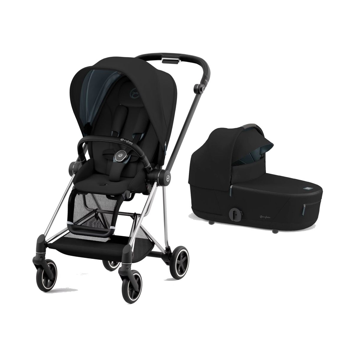 Cybex Mios Chrome Pushchair with Lux Carry Cot-Deep Black/Black