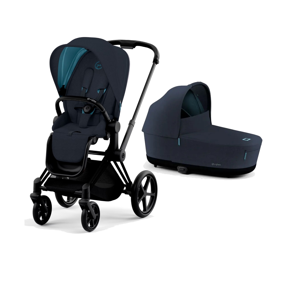 Cybex Priam Black Pushchair with Lux Carry Cot-Midnight Blue Plu