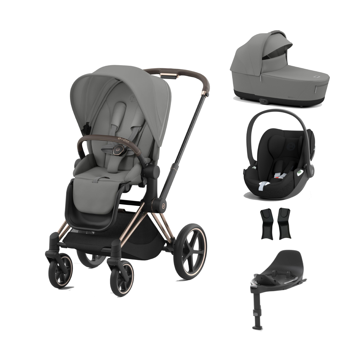 Package Includes: Cybex Priam Rose Gold Stroller Frame Cybex Priam Seat Unit Cybex Priam Lux Carrycot Cybex Cloud T i-Size Carseat Cybex Base T Cybex Priam Stroller Raincover Cybex Priam Lux Carrycot Raincover Cybex Priam Pushchair The Cybex Priam Pushchair boasts an updated design with innovative new functionality that makes the Priam even more desirable. The Priam has revolutionized the industry by combining timeless design elements with new features that make life for parents even easier and match their highest expectations. The new one-pull harness system is a stand-out new feature, bringing greater ease for the parent and greater comfort for little ones. A world-first this harness concept can be precision fitted in seconds with just one hand. It’s the perfect fit, every time. One frame; four travel options. The Priam frame is compatible with a stroller seat unit, an infant car seat, and a LUX Carry Cot. An extendable canopy with UPF50+ protection shields your little one from the sun?s glare, while a breathable mesh seat keeps baby cool on hot summer days. And with the Seat Pack?s soft padded harness and seat inlay, your baby can travel in comfort while you travel in style. Features: Suitable from birth to approx. 4 years Extendable XXL sun canopy provides UPF50+ sun protection The Priam LUX seat can be easily adjusted to the desired position in just a few simple steps Padded harness Adjustable leg rest Recline function with lie-flat option One hand is all you need to recline the Priam All-wheel suspension ensures a soft, quiet + comfortable ride Unique one-pull harness helps you secure your little one in the stroller in seconds, with just one hand Convenient backrest pocket Features a spacious + easily accessible shopping basket that can be folded out when needed The Priam frame is compatible with a stroller seat unit, an infant car seat + a LUX Carry Cot Dimensions: Measurements folded: L83. 5 x W51. 5 x H31. 5cm Measurements unfolded: L92-83 x W60 x H98. 5-108cm
