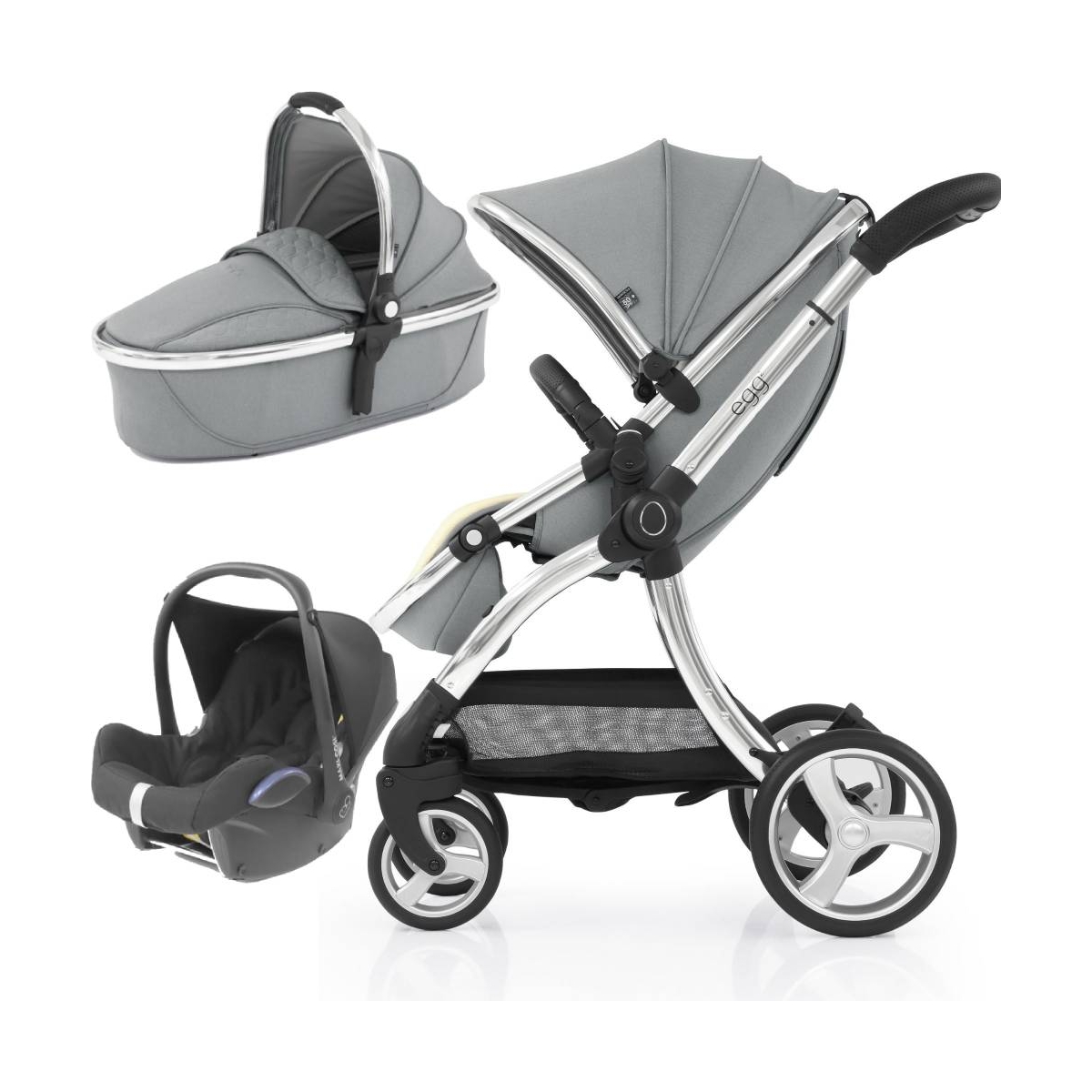 PACKAGE INCLUDES: egg® 2 Stroller egg® 2 Carrycot egg® Maxi Cosi Cabriofix Car Seat egg® Multi Car Seat Adapters egg® 2 Seat Liner EGG® 2 STROLLER: Introducing the Egg2 Stroller ? re-invented and reborn, Egg have taken the amazing and popular original stroller and evolved it ? they?ve kept all the concepts from the original stroller, including the inspired luxury design and improved on it. Soft-touch marl tailoring in the stunning colourways, smooth curves, infinite lines, and superb design engineering, the Egg2 ensures an effortlessly smooth ride for baby and exceptional ease of use for new parents. Compatible and convertible, the Egg2 can be used from birth with a carrycot, newborn insert or a variety of car seats like Maxi-Cosi, Cybex or Be Safe as well as the Egg Shell 2 i-Size car seat. A number of coordinating accessories are available including footmuffs, changing bags, and a parasol. Using the Egg2 tandem adaptors (sold separately) you can turn the stroller into a tandem making the stroller future proof if your family grows. Features: Suitable from 6 months to 25kg (Birth with carrycot, newborn insert or car seat) Forward and parent facing Car seat and carrycot compatible One-hand fold Luxurious design that will turn heads Free-standing compact fold to keep fabrics cleaner Adjustable leg rest to keep your child comfy Can be faced towards you or the world, your choice Reclines to keep your child comfortable for longer egg® Carrycot: The egg®2 Carry Cot is designed with your childs comfort in mind and with a mattress and padded liner included, paired with the domed top of the carrycot your child will be sure to travel in maximum comfort every time they are in their stroller. The egg®2 Carry Cot is suitable for use in both single and tandem mode, and can even be used for occasional over night sleeping. Features: Suitable from birth to approx 6 months Lightweight and portable Raincover included Stylish leather carry handle Domed top to provide extra room for your