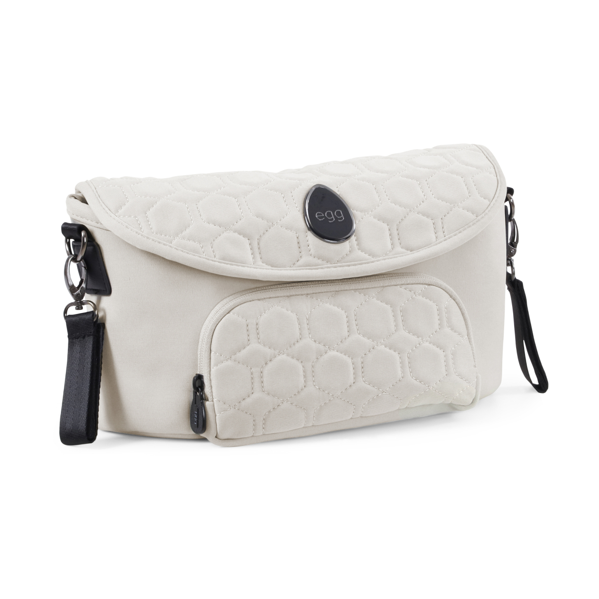 The Egg2 Organiser is the latest addition to Egg’s range of matching Stroller Accessories. Includes a handy front pocket, ideal for your keys & phone, as well as a larger bag at the back, big enough for bottles, snacks and dummies. This has velcro dividers which can be used to personalise the space so it works for you. Finally there is a smaller internal zip pocket. Includes straps to attach the Organiser Bag to the handle of your pushchair and a handy shoulder strap for you to carry. Having kids never looked so stylish!