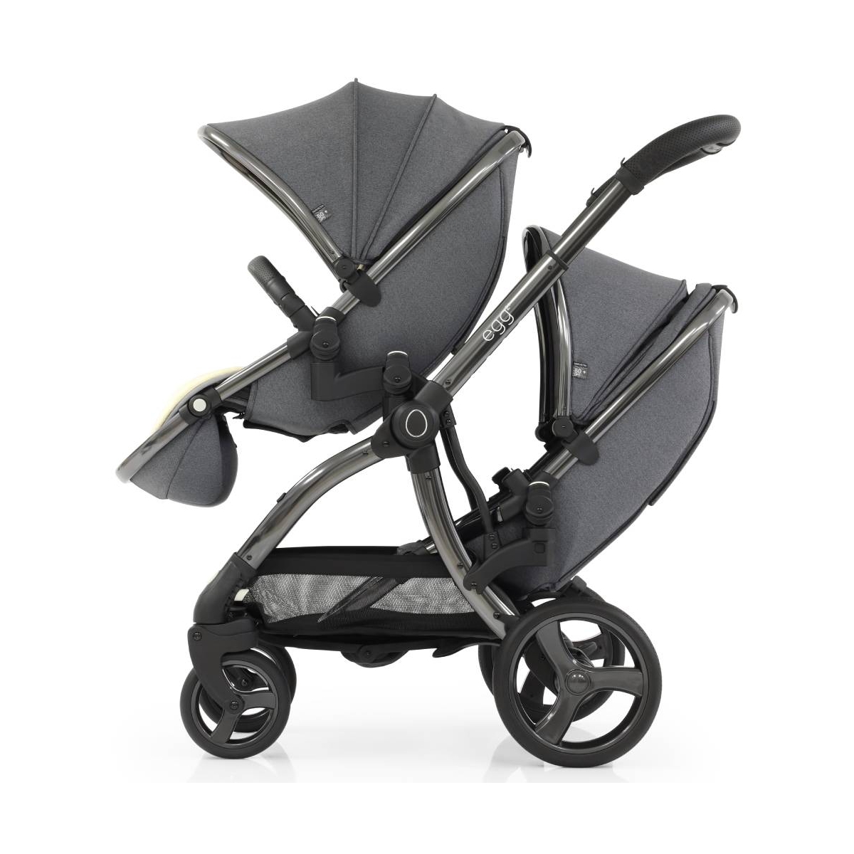 PACKAGE INCLUDES: egg® 2 Stroller egg® 2 Tandem Seat egg® 2 Tandem Adapters egg® 2 Stroller: Introducing the Egg2 Stroller ? re-invented and reborn, Egg have taken the amazing and popular original stroller and evolved it ? they?ve kept all the concepts from the original stroller, including the inspired luxury design and improved on it. Soft-touch marl tailoring in the stunning Just Black colourway, smooth curves, infinite lines, and superb design engineering, the Egg2 ensures an effortlessly smooth ride for baby and exceptional ease of use for new parents. This stroller is a Special Edition and therefore includes a Special Edition matching backpack changing bag as well as a soft fur liner in a beautiful blush colour. Compatible and convertible, the Egg2 can be used from birth with a carrycot, newborn insert or a variety of car seats like Maxi-Cosi, Cybex or Be Safe as well as the Egg Shell 2 i-Size car seat. A number of coordinating accessories are available including footmuffs, changing bags, and a parasol. Using the Egg2 tandem adaptors (sold separately) you can turn the stroller into a tandem making the stroller future proof if your family grows. Features: Suitable from 6 months to 25kg (Birth with carrycot, newborn insert or car seat) Forward and parent facing Car seat and carrycot compatible One-hand fold Luxurious design that will turn heads Free-standing compact fold to keep fabrics cleaner Adjustable leg rest to keep your child comfy Can be faced towards you or the world, your choice Reclines to keep your child comfortable for longer egg® 2 Tandem Seat: The egg® 2 Tandem Seat transforms your egg pushchair into a practical inline stroller – allowing you to carry another child (aged 6 months or over) on your egg 2 Stroller. Features: Transforms your egg pushchair into a practical inline stroller Carry another child (aged 6 months or over) Dimensions: Weight: 4kg