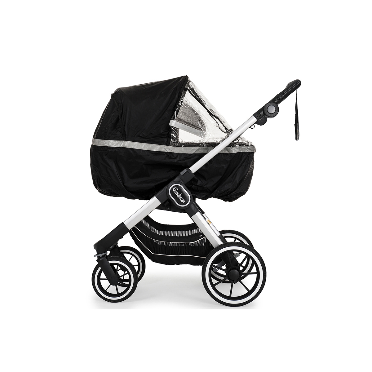 With the Emmaljunga Exclusive Rain cover, keep your baby dry when the rain comes. Our rain cover protects your child from the rain and is easy to attach and to remove. It’s stored in a handy bag and with the help of the zipper, you can easily take care of your child even when the cover is attached. Strategically placed reflective straps make the stroller easy to spot in the dark. Two models are available: Small – Fits NXT Carrycot and NXT Ergo Seat Unit Features: With the Emmaljunga Exclusive Rain cover, keep your baby dry when the rain comes. Our rain cover protects your child from the rain and is easy to attach and to remove. It’s stored in a handy bag and with the help of the zipper, you can easily take care of your child even when the cover is attached. Strategically placed reflective straps make the stroller easy to spot in the dark. The rain cover can be used for our models NXT Carrycots and NXT Ergo seat units. Dimensions: L x W x H cm: 26 x 17 x 7