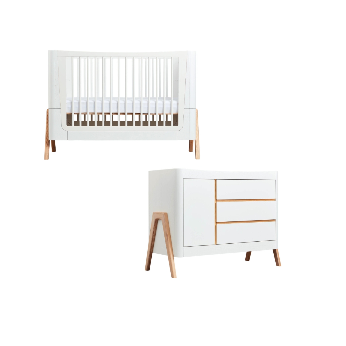 Package Includes: Gaia Hera Complete Sleep Cot Gaia Hera Dresser Gaia Hera Complete Sleep Cot Suitable from birth to 5years+, the Hera cot is a beautiful Mid-Century inspired and cleverly designed choice for your family. Made from sustainably managed Ash forests, the gently curved ends in Natural Ash tones highlight the real grain of this eco-friendly wood. With stunning Walnut A-frame accents, its’ compact 60×120 size makes it suitable for smaller spaces with room to grow and extend. Suitable from birth, the Hera cot has 3 different height adjustments Newborn/3mths/ 6mths+ and includes the parts to convert your cot to Toddler Bed (2-3yrs) and First Bed (4-5yrs). Extend the life of your Hera cot with the Junior Bed extension(purchased separately). FEATURES: Made from sustainably sourced natural ash wood with walnut accents Suitable from birth to 5yrs 3 mattrress height adjustments Converts to Toddler bed and First Bed Junior Bed Extension available (up to 7 yrs) A Frame legs in real wood texture Requires 60 x 120 cm cot mattress (available separately) DIMENSIONS: Dimensions (H x W x L): 93. 4 x 61. 4 x 124. 4 cm Weight: 39kg Gaia Hera Dresser The Hera Dresser is a beautiful Mid-Century inspired and cleverly designed choice for your family. Made from sustainably managed Ash forests, the gently curved ends in Natural tones highlight the real grain of this eco-friendly wood. With stunning Walnut A-frame accents, its’ generous 1. 2 x 0. 6 m size makes it suitable for storing all your baby’s needs and for use later on in a teen or adult space. 3 generous smooth action drawers and a cabinet with 2 height adjustable shelves, provide ample storage space for clothing, changing essentials and bedding. The dresser top has a safety lip to prevent items rolling off and can safely be used to locate a cot top changer. FEATURES: Stylish contrasting Scandinavian design Made of solid ash wood Generous storage space Easy open cabinet with 2 shelves Three soft close drawers A Frame legs in