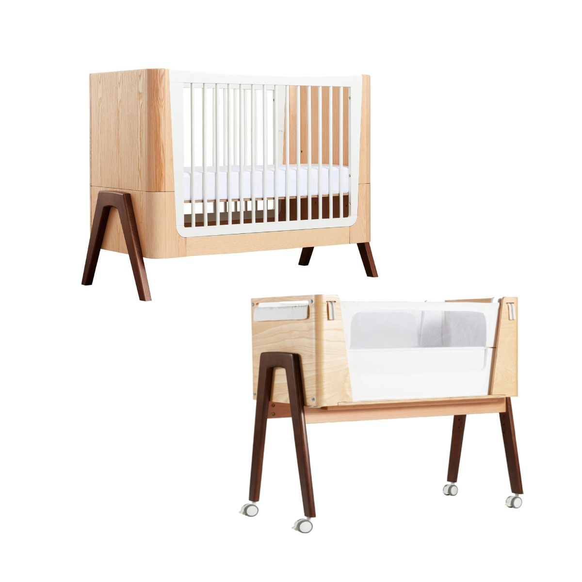 PACKAGE INCLUDES: Gaia Hera Complete Sleep Cot Gaia Hera Co-Sleep Crib with Mattress GAIA HERA COMPLETE SLEEP COT Suitable from birth to 5years+, the Hera cot is a beautiful Mid-Century inspired and cleverly designed choice for your family. Made from sustainably managed Ash forests, the gently curved ends in Natural Ash tones highlight the real grain of this eco-friendly wood. With stunning Walnut A-frame accents, its’ compact 60×120 size makes it suitable for smaller spaces with room to grow and extend. Suitable from birth, the Hera cot has 3 different height adjustments Newborn/3mths/ 6mths+ and includes the parts to convert your cot to Toddler Bed (2-3yrs) and First Bed (4-5yrs). Extend the life of your Hera cot with the Junior Bed extension(purchased separately). FEATURES: Made from sustainably sourced natural ash wood with walnut accents Suitable from birth to 5yrs 3 mattrress height adjustments Converts to Toddler bed and First Bed Junior Bed Extension available (up to 7 yrs) A Frame legs in real wood texture Requires 60 x 120 cm cot mattress (available separately) DIMENSIONS: Dimensions (H x W x L): 93. 4 x 61. 4 x 124. 4 cm Weight: 39kg Gaia Hera Co-Sleep Crib with Mattress Suitable from birth up to approx. 6 months the Gaia Hera Co-Sleep Crib from Gaia Baby allows your little one to sleep next to you in a safety manner. This bedside crib is beautifully crafted from real Ash wood, which makes a big difference in quality in comparison to many other bedside cribs available on the market and can stay with your family for next generations. The Hera Co-Sleep Crib offers spacious 82 x 40 sleep area with luxurious soft lining and superior UK Kidtech foam mattress with nicely quilted cover provide ultimate comfort and temperature regulation for your baby. The perforated double layered mattress base and two dropdown mesh side-panels provides excellent 360° air circulation. The base is also featured with integrated 15° tilt that can be simply set to help babies with dige