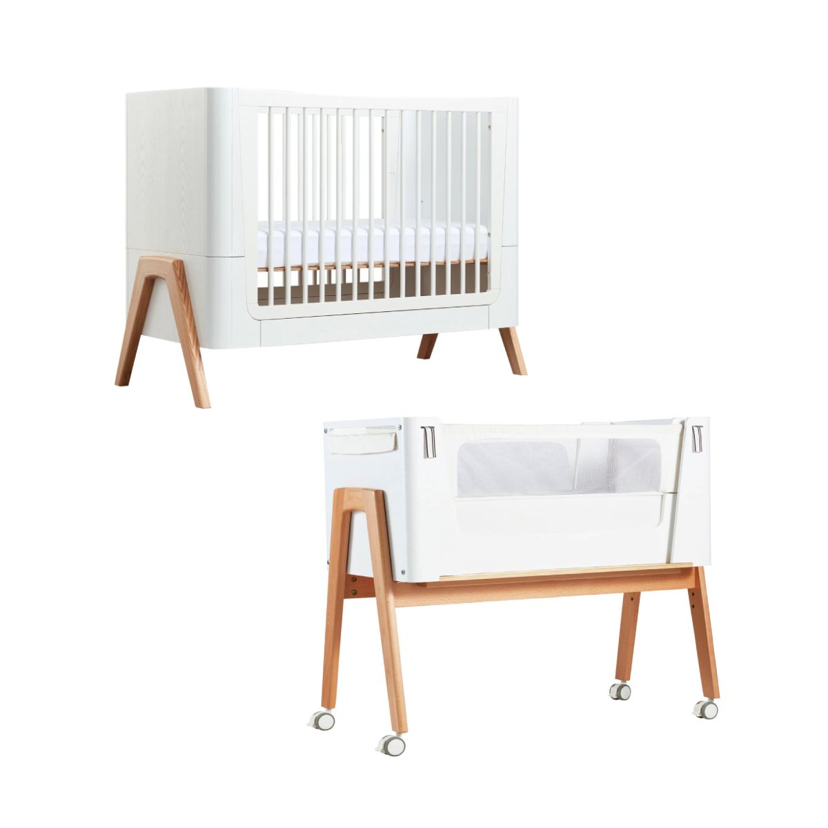 PACKAGE INCLUDES: Gaia Hera Complete Sleep Cot Gaia Hera Co-Sleep Crib with Mattress GAIA HERA COMPLETE SLEEP COT Suitable from birth to 5years+, the Hera cot is a beautiful Mid-Century inspired and cleverly designed choice for your family. Made from sustainably managed Ash forests, the gently curved ends in Natural Ash tones highlight the real grain of this eco-friendly wood. With stunning Walnut A-frame accents, its’ compact 60×120 size makes it suitable for smaller spaces with room to grow and extend. Suitable from birth, the Hera cot has 3 different height adjustments Newborn/3mths/ 6mths+ and includes the parts to convert your cot to Toddler Bed (2-3yrs) and First Bed (4-5yrs). Extend the life of your Hera cot with the Junior Bed extension(purchased separately). FEATURES: Made from sustainably sourced natural ash wood with walnut accents Suitable from birth to 5yrs 3 mattrress height adjustments Converts to Toddler bed and First Bed Junior Bed Extension available (up to 7 yrs) A Frame legs in real wood texture Requires 60 x 120 cm cot mattress (available separately) DIMENSIONS: Dimensions (H x W x L): 93. 4 x 61. 4 x 124. 4 cm Weight: 39kg Gaia Hera Co-Sleep Crib with Mattress Suitable from birth up to approx. 6 months the Gaia Hera Co-Sleep Crib from Gaia Baby allows your little one to sleep next to you in a safety manner. This bedside crib is beautifully crafted from real Ash wood, which makes a big difference in quality in comparison to many other bedside cribs available on the market and can stay with your family for next generations. The Hera Co-Sleep Crib offers spacious 82 x 40 sleep area with luxurious soft lining and superior UK Kidtech foam mattress with nicely quilted cover provide ultimate comfort and temperature regulation for your baby. The perforated double layered mattress base and two dropdown mesh side-panels provides excellent 360° air circulation. The base is also featured with integrated 15° tilt that can be simply set to help babies with dige
