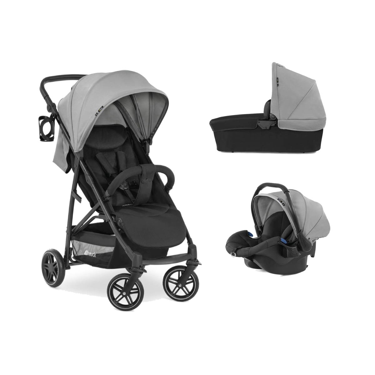 Package Includes: Hauck Rapid 4R Plus Pushchair Hauck Rapid 4R Plus Carrycot Hauck Comfort Fix Car Seat Hauck Rapid 4R Plus Pushchair Hauck Rapid 4R Plus Pushchair is a super functional 4-wheeled stroller designed for the city adventures. It features sporty compact design with easy going and puncture resistant wheels to provide excellent ride on bumpy grounds. Font wheels with 360 degree swivel make it easy to steer and navigate in shops and narrow lanes. To match individual preferences Rapid 4R parent handle can be adjusted in 4 different positions. Its lightweight chassis folds up with one hand and then you can carry by using the same release loop handle. The Rapid 4R Plus is equipped with wide adjustable seat, extra large UPF 50+ sun canopy with window clap and safety features including of 5-point harness and detachable front bar with additional crotch belt. The Rapid 3R comes with convenient bottle/cup holder and xl shopping basket. Features: Suitable from birth up to 25kg (approx. 4 years old) Comes with carrycot and Comfort Fix infant car seat Lightweight one hand folding design Easy running puncture resistant wheels 360 degree swivel/lockable front wheels Height adjustable handle – 4 positions Wide seat with adjustable back rest and foot rest Extra large UPF 50+ sun canopy with window Soft padded 5 point harness system Detachable front bar with crotch belt XL shopping basket Locking brake Wipeable fabrics – easy to keep clean Includes bottle/cup holder Dimensions: Weight: 11. 55 kg Dimensions built up: L114 x W61 x H110cm Dimensions folded: L88 x W61 x H39cm Handle height: 75-112 cm Lying area: L87 x W33 Front wheel diameter: 26 cm Rear wheel diameter: 30 cm Hauck Comfort Fix Car Seat Suitable for babies from birth up to a weight of 13kg. With energy absorbing foam in the head and shoulder area providing your little one with the ultimate side protection. Special guides ensure correct installation, making sure your little one remains safe from A to B. Made with