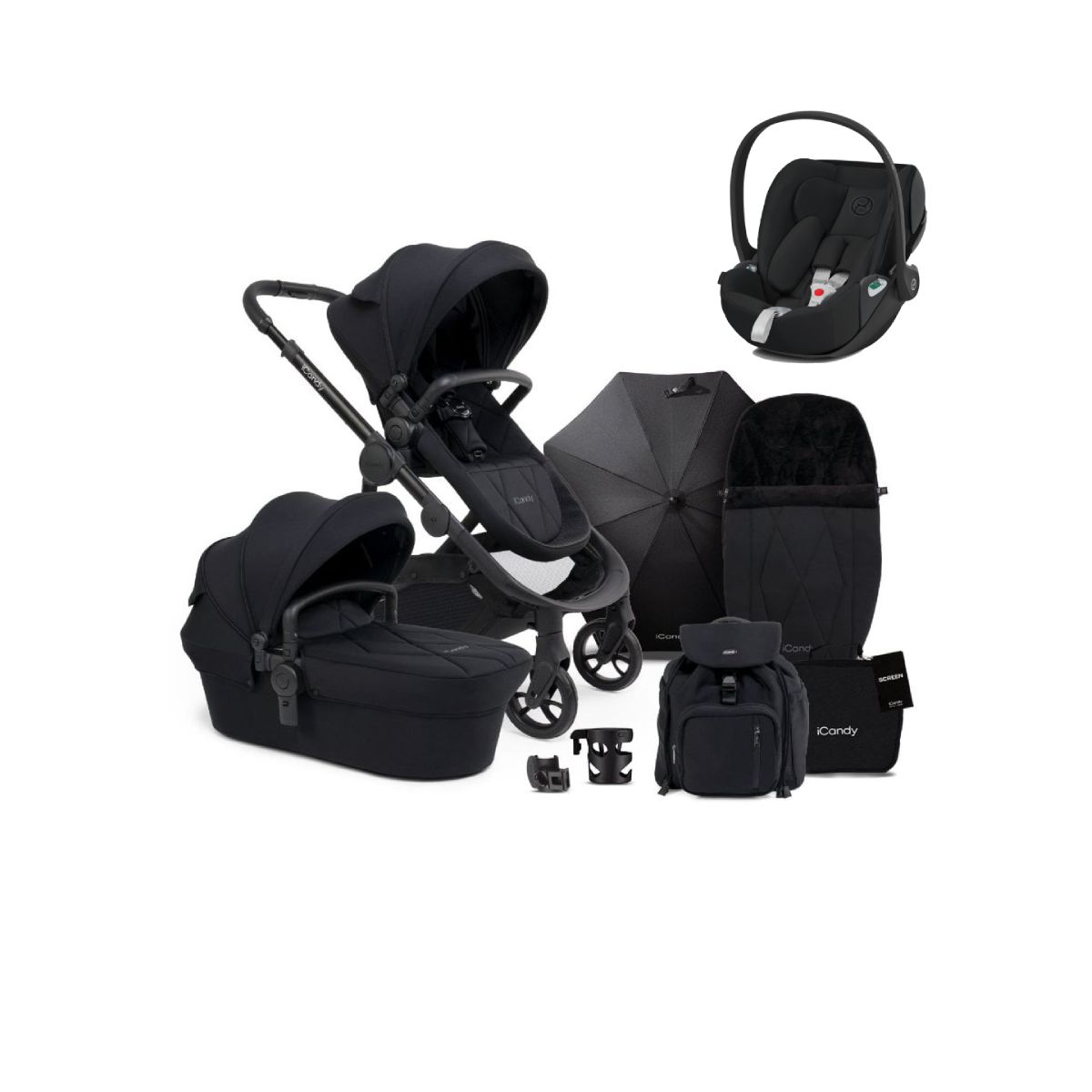 PACKAGE INCLUDES: iCandy Orange Puschair iCandy Orange Carrycot Cybex Cloud Z2 i-Size Group 0+ Car Seat iCandy Orange Rain Cover iCandy Orange Changing Bag iCandy Orange Fottmuff iCandy Orange Parasol (To follow in March) iCandy Cup Holder The iCandy Orange is the ultimate companion when it comes to parenthood and the beautiful, multi-functional pushchair is ready for the adventure, every step of the way. An ingenious integrated Ride-on Board, lightweight and streamlined chassis, super spacious basket, as well as a changing bag and Duo Pod included, mean the iCandy Orange is ready from the get-go, making it the ultimate choice for first-time parents. Functionality modifications, including softer suspension and the ability to fold the pushchair with the seat unit and bumper bar still attached, enhance day to day life as well as comfort for both parent and child. These adaptations don?t come at the expense of style, with the iCandy Orange exuding a sophisticated and refined aesthetic, achieved through modern colour blocking of premium padded fabrics, available in a range of stylish shades. The added peace of mind that the iCandy Orange can scale into a double pushchair future proofs the design for parents, making it the ultimate choice for growing families. Features: Suitable from birth (with carrycot) up to 25kg Carrycot suitable for permanent overnight sleeping Converts from a single to double pushchair Converts to full travel system with included car seat adaptors Integrated Ride-on Board Co-ordinating changing bag and Duo Pod included One-handed seat recline with three positions Cinema seating 30 different configurations Freestanding fold Folds with seat unit and bumper bar still attached (single mode) Areas of functionality clearly highlighted in light grey Parent and world facing modes Adjustable, multi-function SPF50+ canopy with multi-position mesh ventilation Soft suspension to make light work of curbs Optimized tyre tread for off-road exploring Adjustable ha