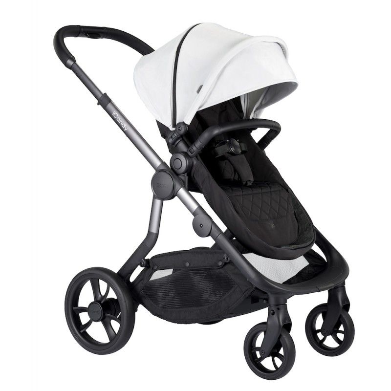 The brand new iCandy Orange pushchair offers unparalleled functionality, which is infused with flawless style and rich textures. The iCandy Orange features high attention to detail, along with eye catching iCandy branding, and minimal rivets on display, creating a sleek and desirable design. The Orange has a lightweight chassis gigantic basket, and ability to upgrade into a double or twin pushchair, the Orange can cater to any parent?s needs. The new Orange travel system allows over 30 unique configurations and combinations to provide ultimate flexibility-something no other pushchair on the market can currently match. Key to the design of the Orange is its longevity, adapting into a double travel system to grow with your family. Furthermore, iCandy have added an integrated ride on board to the pushchair?s frame ? a feature sure to surprise and delight parents with babies who have an older sibling. The integrated ride on board holds an impressive 20KG and provides total ease of use. It eliminates the need and expense of a separate ride on board, whilst adding incredible flexibility to the use of the product. The iCandy Orange arrives with all the necessary components required to upgrade into a double pushchair within the box, meaning parents will only have to buy the carrycot and extra seat fabrics to upgrade their pushchair. The iCandy Orange fabrics have been meticulously considered, with two individual materials being woven together to create a unique two-tone fabric, which is a reflection of modern day trends. The Orange also boasts a soft touch leatherette handle and bumper bar, whilst in an iCandy first, the bumper bar rotates to provide easy access to your child. Last but not least the ground-breaking feature invented for the Orange is the addition of unique iCandy riser adapters. The iCandy risers can be used to create the first iCandy ?cinema? seating design, meaning a parent can maintain all important eye contact with both of their children when in double m