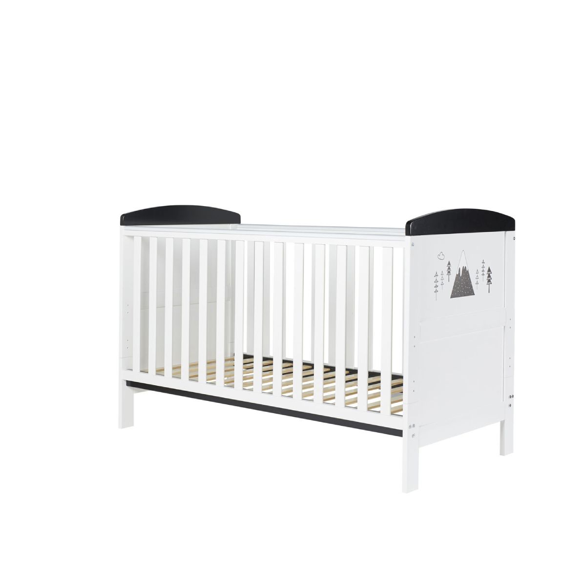 Add an extra splash of personality to baby?s bedroom with the Coleby Style Cot Bed. Featuring the same simple but stylish look as the main Coleby range, the Coleby Style also includes a striking print on the cot end. The playful intergalactic print showcases two unique designs; a planet surrounded by stars, taking baby?s dreams even further. It also co-ordinates with pieces from our Monochromatic Mountain illustration adds a little flair while also co-ordinating with pieces from our Mono Mountains nursery bedding and décor collection. The cot bed itself is designed to last your little one through the first four years. Simply drop the mattress height as baby learns to sit up, and again as they start to stand. That way they stay secure in their cot while also enjoying a bit more space. Then when the time comes, convert it to a toddler bed to give them even more independence. Features: Themed print on cot end adds some personality Suitable from birth to 4 years old Includes 3 mattress positions to adjust height as baby grows Converts from a cot to a toddler bed Requires a 140cm x 70cm mattress (choice of mattres available) Dimensions: Dimensions: H: 95cm x D: 144cm x W: 75cm Weight: 18kg