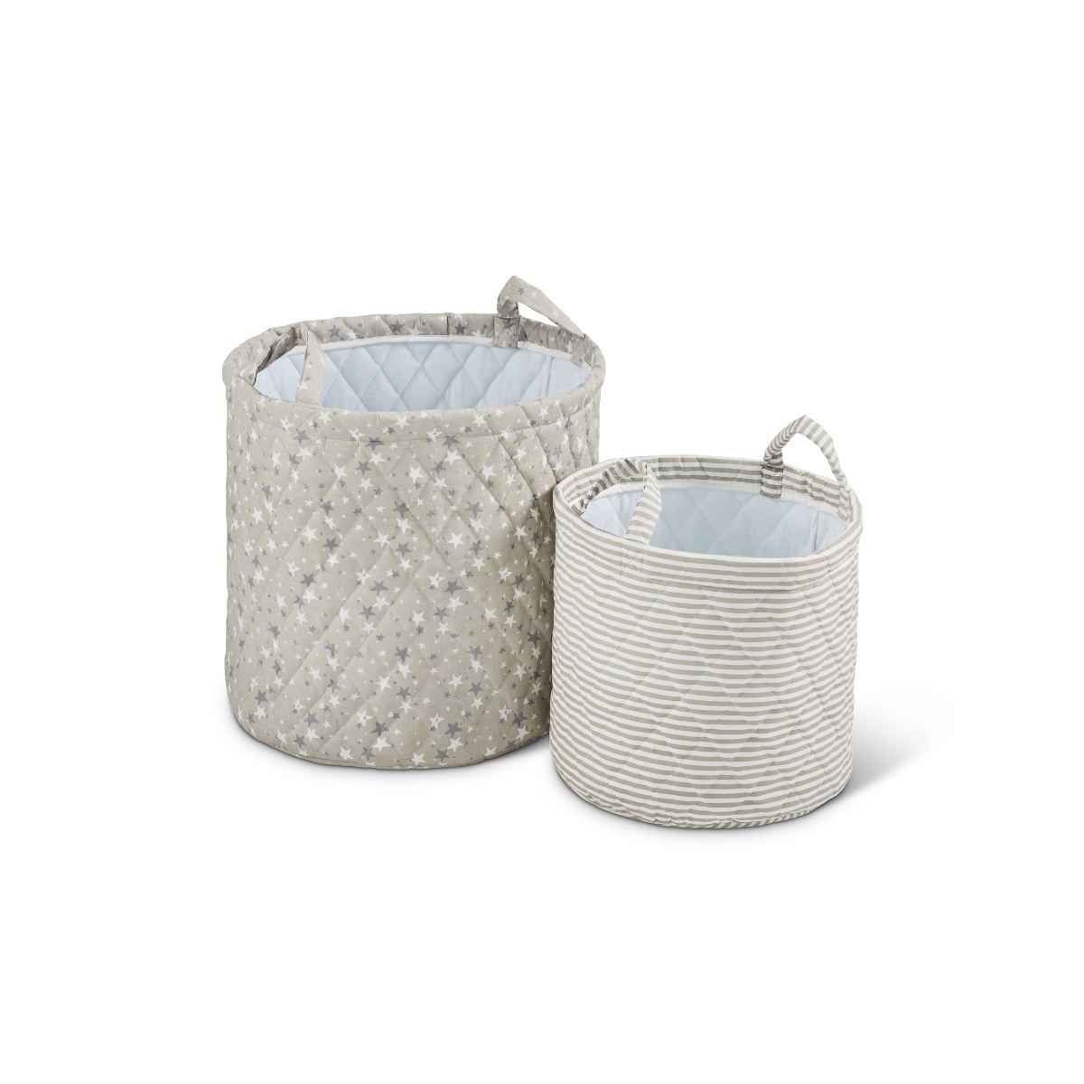 Our pack of two storage baskets are designed to match the Cosmic Aura collection and feature stylish tactile quilting. The two different sized baskets are a perfect storage solution for the bedroom, playroom or living room and can be used to store a whole range of items from toys to spare bedding. Our storage baskets are perfect for keeping your home clutter-free. Features: Medium 30cm x 30cm, Large 40cm x 40cm Outer 100% cotton, Filler 100% polyester, Lining 100% polyester