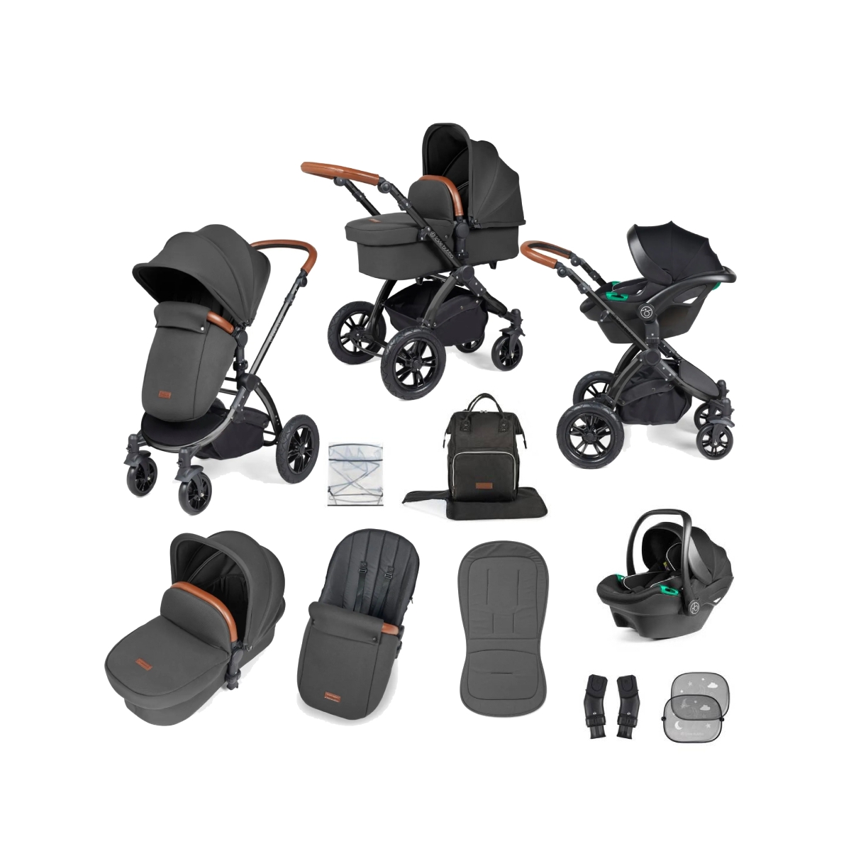 PACKAGE INCLUDES: Stomp Luxe pushchair Pushchair seat unit and carrycot Stratus i-Size car seat Car seat adapters Car sunshades Changing rucksack and mat Pushchair apron, footwarmer, seat liner and rain cover All-Terrain Designer Pram: The Stomp Luxe wheels are designed to handle different terrains, with puncture-proof rear rubber wheels with thick tread, that offer a convenient quick-release feature for cleaning or storage. The self-locking swivel front wheels offer you more control while you stroll. The Stomp Luxe showcases the iconic stylish hood shape but is enriched with luxury fabrics and exciting extras which give you even more luxe for your bucks. Premium Travel System | With convertible seat unit and carrycot The separate carrycot and seat unit fabrics easily zip on and off the single pushchair frame, creating a more sustainable product which requires less storage space. The UPF 50+ hood protects little ones from the sun, while the coordinating apron, foot warmer, seat liner and carrycot ensure your little one is nice and cosy for every journey. Suitable from birth, the carrycot comes with a mattress which is perfect for flat-lying snoozes on the go. Travel System | Includes i-Size Car Seat The Stratus Car Seat meet the i-Size international safety standard ECE-R129. i-Size ensures child car seats are easier to fit, provide improved protection from side impacts and keep children rear-facing for longer. It also complies with the ISOFIX international standard for car seat installation (Isofix Base available separately). This means you can be doubly sure that it will keep your little one secure on all their journeys. With side impact protection, pop-out impact panels and a supportive newborn liner, you can rest assured that baby will be safe going from A to B. STOMP LUXE PUSHCHAIR FEATURES: Puncture-proof, all terrain, quick-release rear wheels Lockable swivel front wheels Pushchair hood with UPF 50+ sun protection Separate carrycot and seat unit fabric Reversi