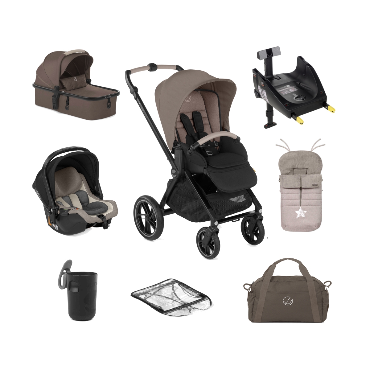 PACKAGE BUNDLE: Jané Muum Pro Pushchair Jané Micro Pro Carrycot Jané Koos i-Size R1 Car Seat Jané iPlatform Comfy iSize Car Seat Base Jané Muum Pro Raincover Jané Pram Bag Jané Coordinating and Reversible seat liner Jané Extra large extendable UV50+ hood / canopy Jané Cup Holder Jané Footmuff JANÉ MUUM PRO PUSHCHAIR Keen to make life as easy as possible for busy parents, the Jané Muum Pro features a large capacity shopping basket so you can carry everything you need effortlessly. It also has a spacious, reversible seat unit with new hood design, so you can have your baby facing you as you walk. Its smaller lighter swivel front wheels with independent suspension, are perfect for getting about on the city streets. And it?s easy, compact folding system with new safety lock makes the pushchair fold up even more compactly, making it easier to carry and store wherever you decide to take it. FEATURES: Suitable from birth – 4 years approx Height adjustable handlebar made of Eco Leather Lightweight aluminium chassis with flat/oval section Easy, compact folding system with new safety lock PRO-FIX system (patented) locks and unlocks car seats and carrycots with just one movement, eliminating the need for fitting kits Hydrolytic PU tyres. 10 times harder wearing than traditional tyres and with great shock absorbing properties Front and rear suspension Detachable front and rear wheels for even more compactness Lockable front swivel wheels Dual action synchronised Foot brake Large shopping basket: up to 4 kg / 18 litres Large extendable multi-position hood. UPF 50+ sun protection Forward or rearward facing detachable seat unit 3 position adjustable backrest Height adjustable 5-point safety harness Removable bumper bar protector made of Eco PU leather Adjustable footrest DIMENSIONS: Unfolded: 92 x 58 x 80-105 cm Folded: 75 x 58 x 34 cm Wheel Diameters: Rear 29 cm | Front 19. 5 cm Weight: Chassis 7. 9 kg | Seat unit 5 kg JANÉ MICRO PRO CARRYCOT Practical and light with a quick foldin